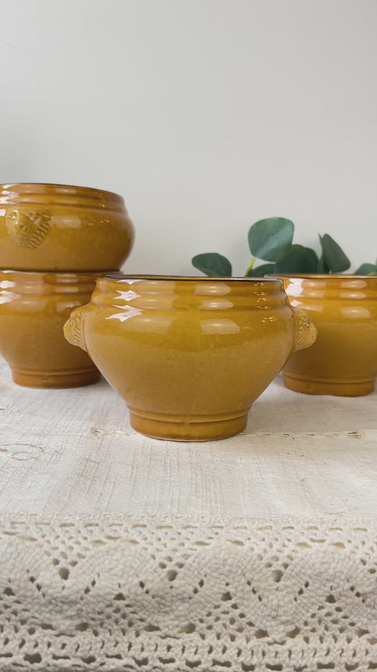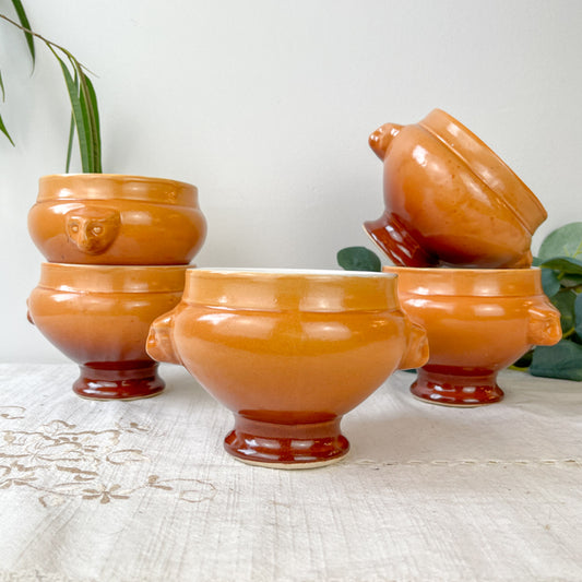 6 Bols à Soupe à l'Oignon Tête de Lion en Céramique Vintage Emile Henry - Marron, Made in France