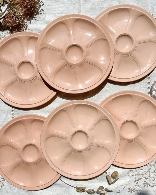 6 Digoin Sarreguemines pink porcelain oyster plates