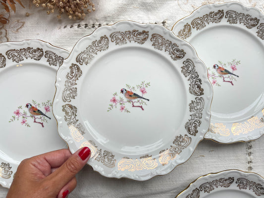 6 Vintage Porcelain Small Plates with Floral Design - Salins