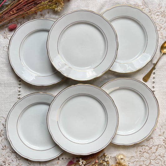 6 Vintage small plates, white porcelain with gold trim, Winterling Bavaria