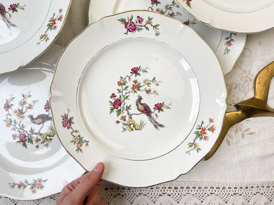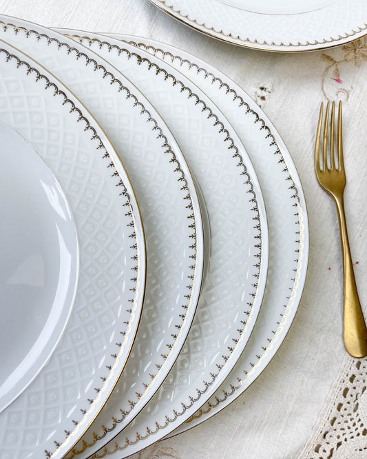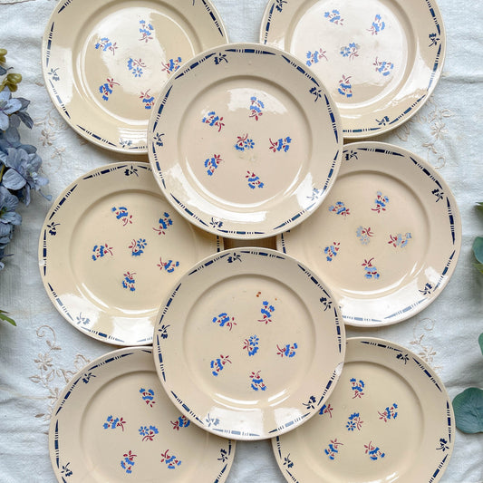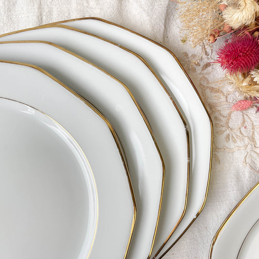 8 vintage porcelain plates, DIGOIN & SARREGUEMINES France 1950, small golden flowers.