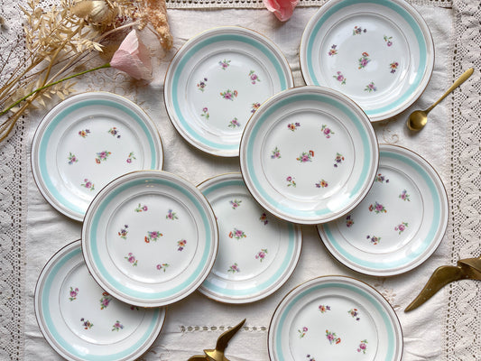 8 small OLYMPIA porcelain plates with floral and gilding pattern