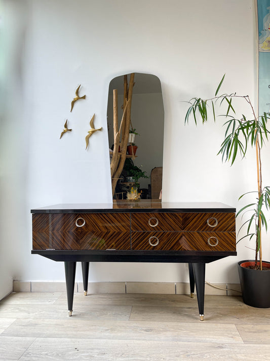 Vintage ceramic snail shells Made in France and Scandinavian style mahogany tray