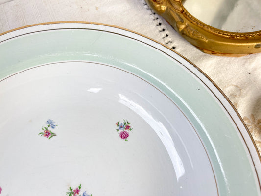 Vintage K&g Luneville "Flore" porcelain hollow plate, 1950s, small blue flowers.