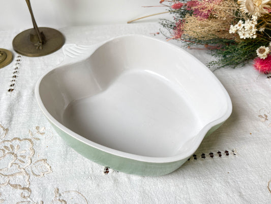 Vintage white and green porcelain hollow plate, Iris Moulin des Loups "Sargosse" 1950s.