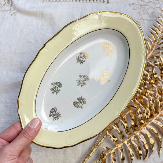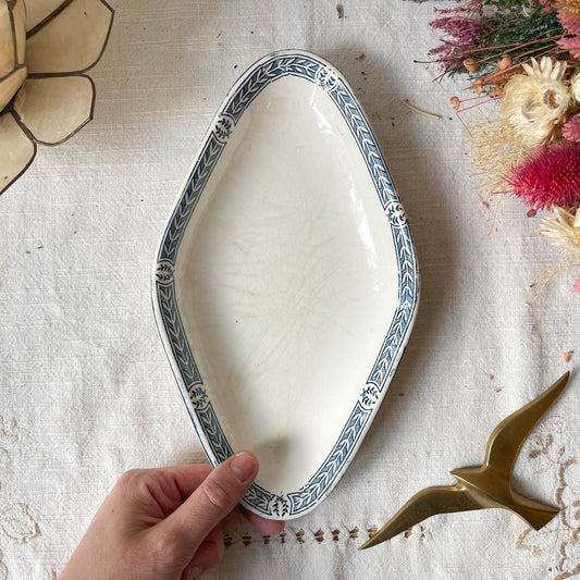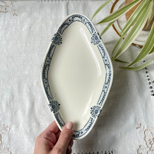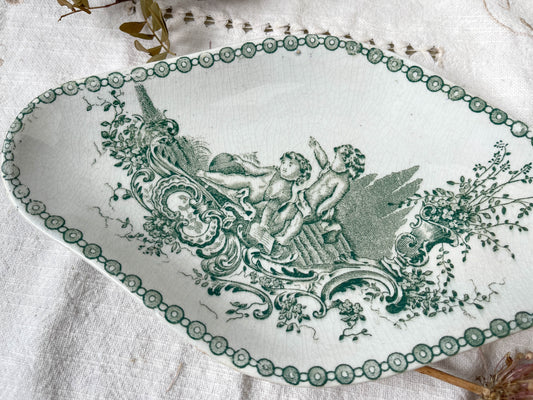 Vintage white and green porcelain bread plate, LUNEVILLE, EPINAY model, 1950.