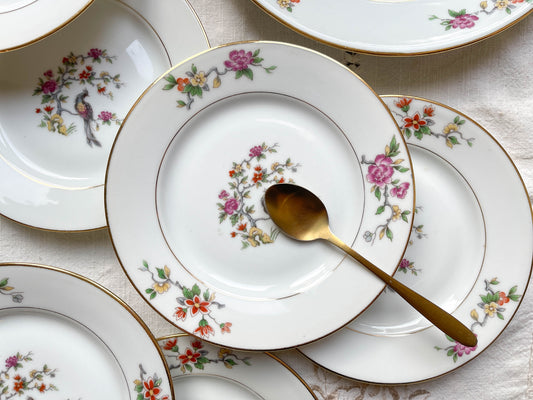 Vintage floral porcelain dessert service HBCM MONTEREAU