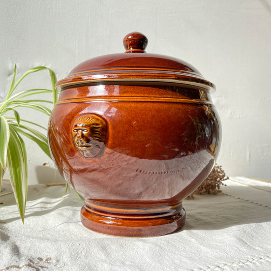 Vintage Lion Head Soup Tureen in Ceramic - Honey and Black, Made in France - Elegance and Tradition for your Recipes