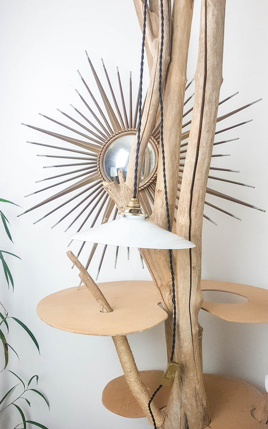 Suspension vintage en verre dépoli et laiton étoile