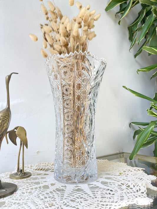 Vintage glass vase with a rose gold gradient geometric pattern.