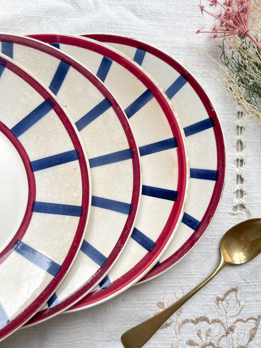 5 Vintage small plates in white and green French porcelain, Céranord.