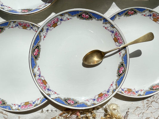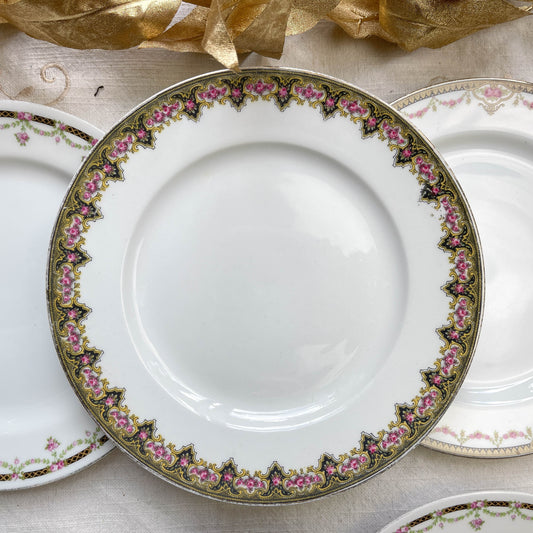5 Petites assiettes vintage dépareillées rose motif fleuri 1950 - DIGOIN SARREGUEMINES - St Amand -