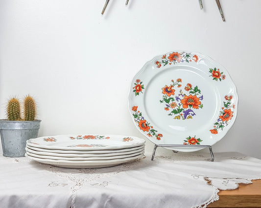 6 Vintage porcelain dinner plates with floral pattern, Sarreguemines 5261 - Vintage floral tableware - French tableware - Vintage plates