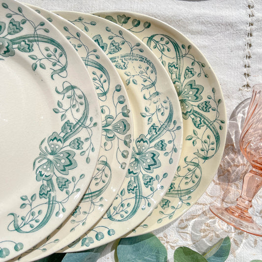 5 Vintage small plates in white and green French porcelain, Céranord.