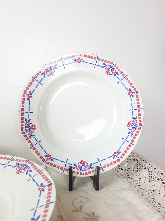 6 MOULIN DES LOUPS flowered earthenware soup plates, Amboise model