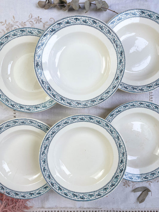 6 BOULENGER blue Terre de Fer deep plates, Champigny model