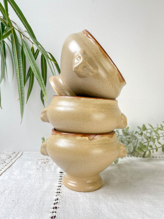 7 Vintage Emile Henry Lion Head Onion Soup Bowls in Ceramic - Brown, Made in France