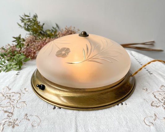 Louis XVI style lamp in gilded bronze with a yellow fringed lampshade – elegant vintage antique lamp