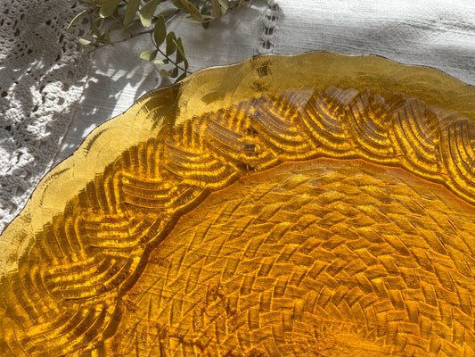 Round amber glass dish ATLANTIC Arcoroc France 1950