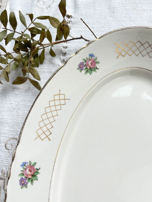 Vintage oval dish in flowered earthenware MOULIN DES LOUPS CORDOUE model
