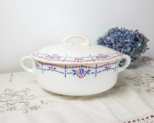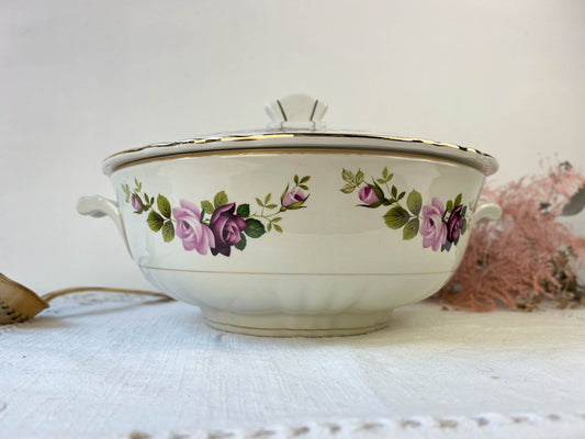 MOULIN DES LOUPS flowered earthenware soup tureen Amboise model