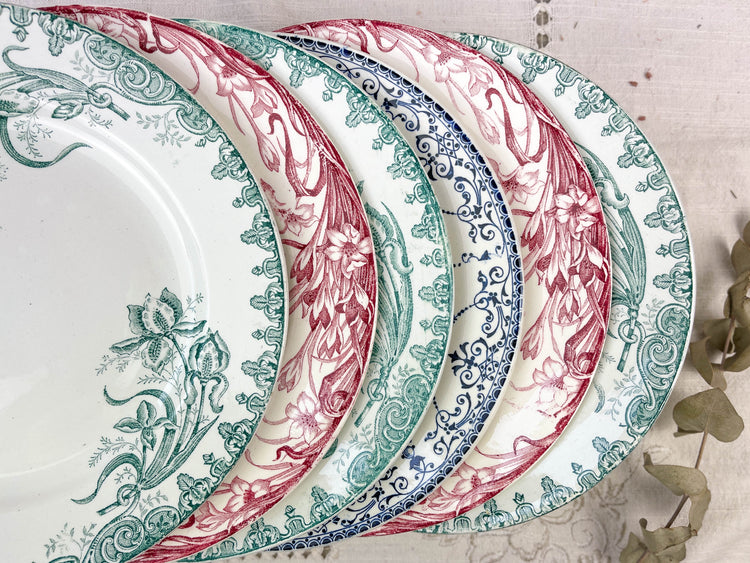 Lot de 6 Assiettes Plates Anciennes Terre de Fer "Figuig" – Longchamp XIXe