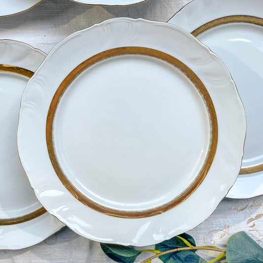 6 Assiettes plates vintage en porcelaine blanche et dorée Limoge francae ADP "Ariane" – Vaisselle ancienne Française élégante