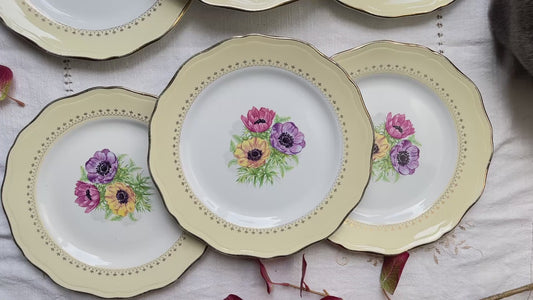 6 mismatched vintage French porcelain plates – Yellow, green, floral – Moulin des Loups - L'Amandinoise