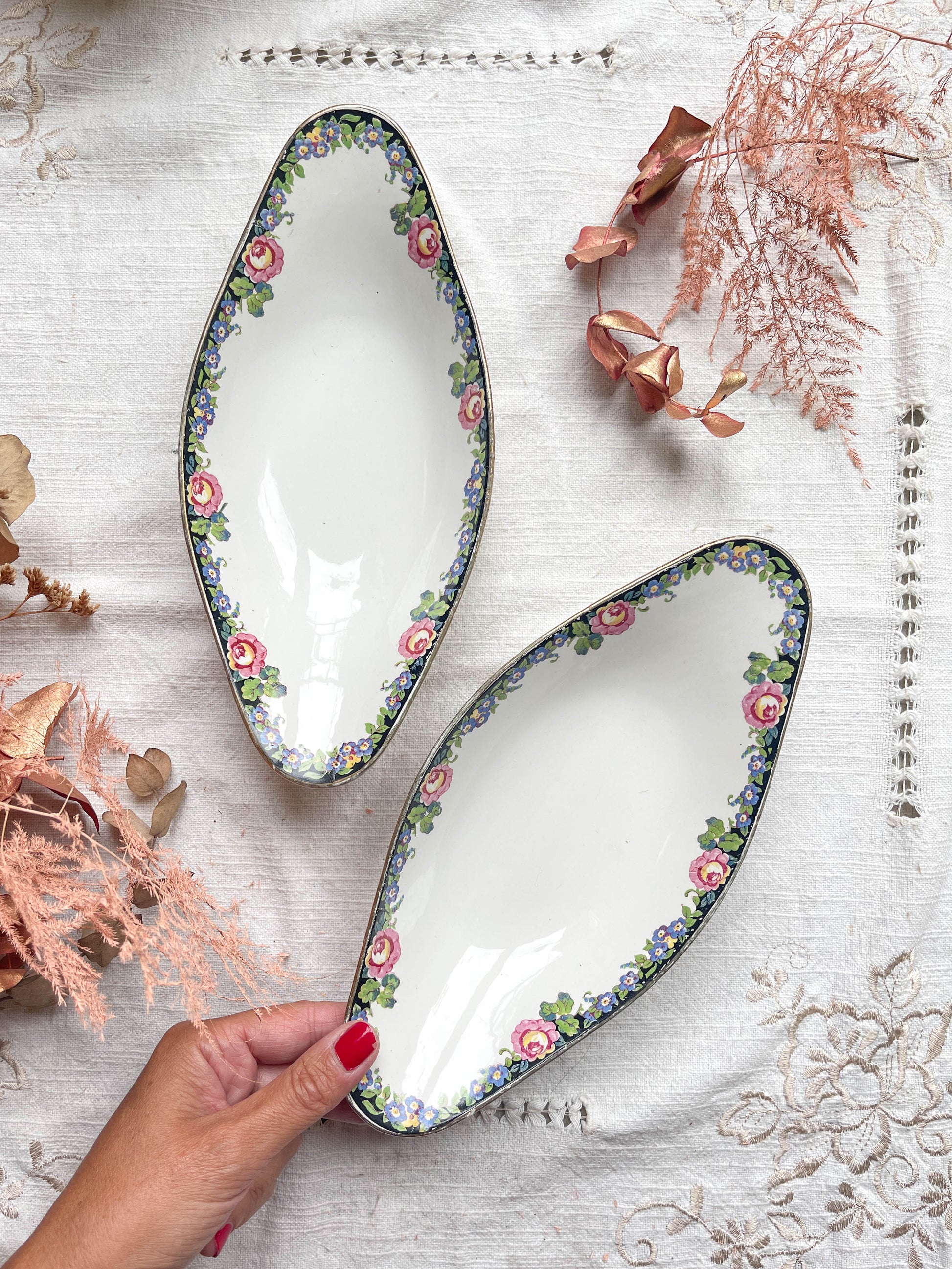 2 vintage porcelain dishes DIGOIN SERREGUEMINES 3984 floral pattern