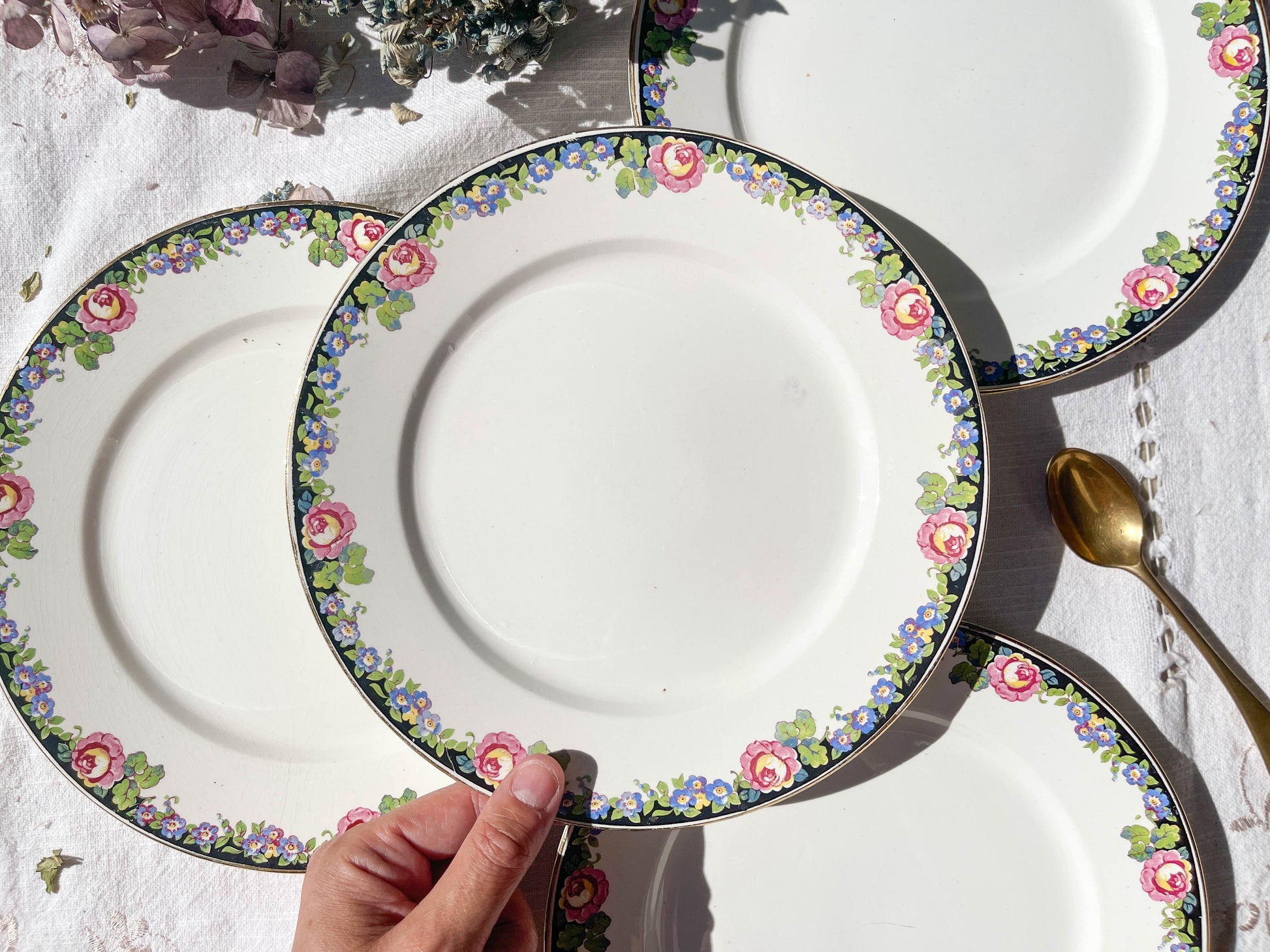 4 Small DIGOIN opaque porcelain plates with floral pattern "3984"