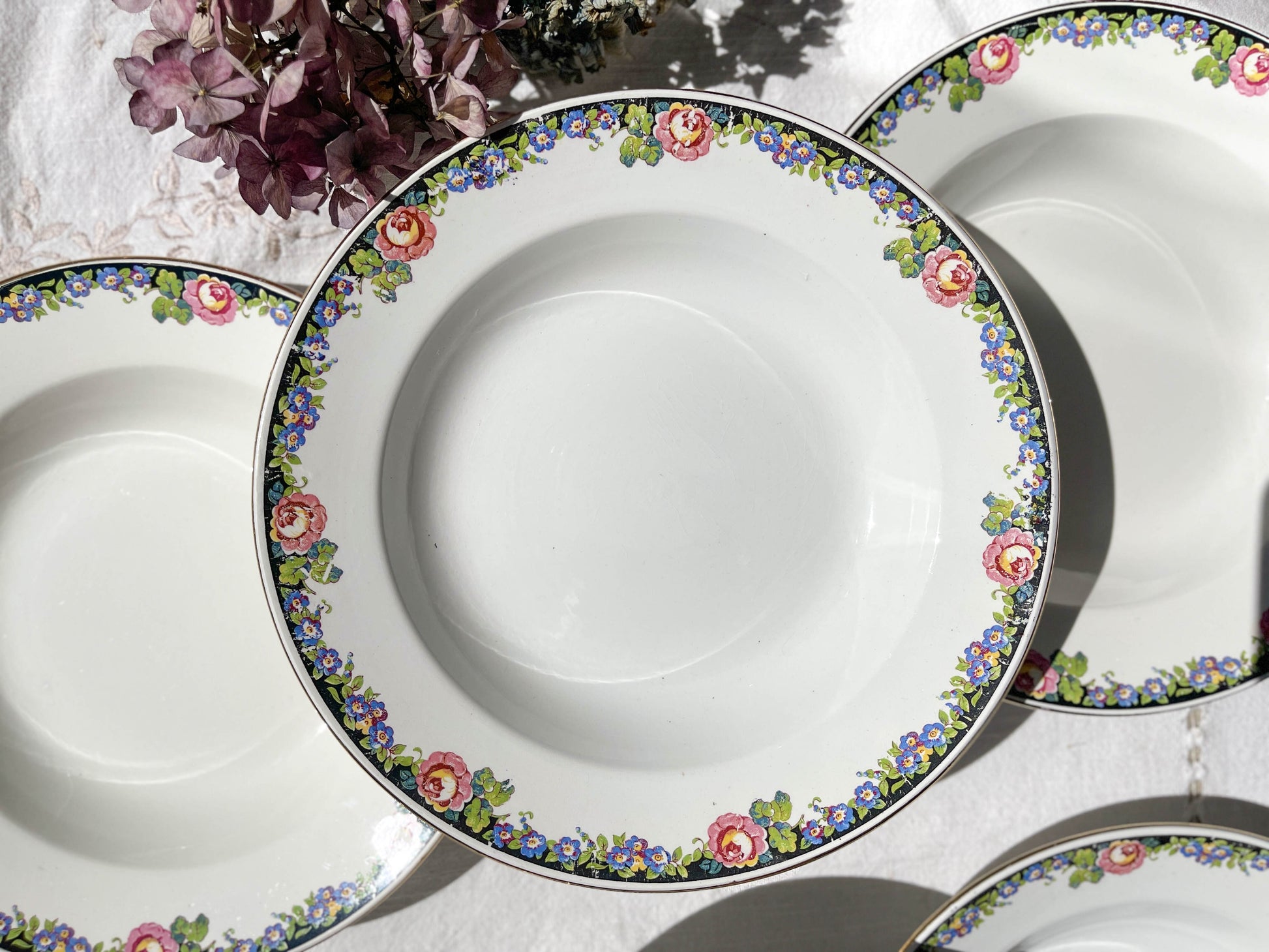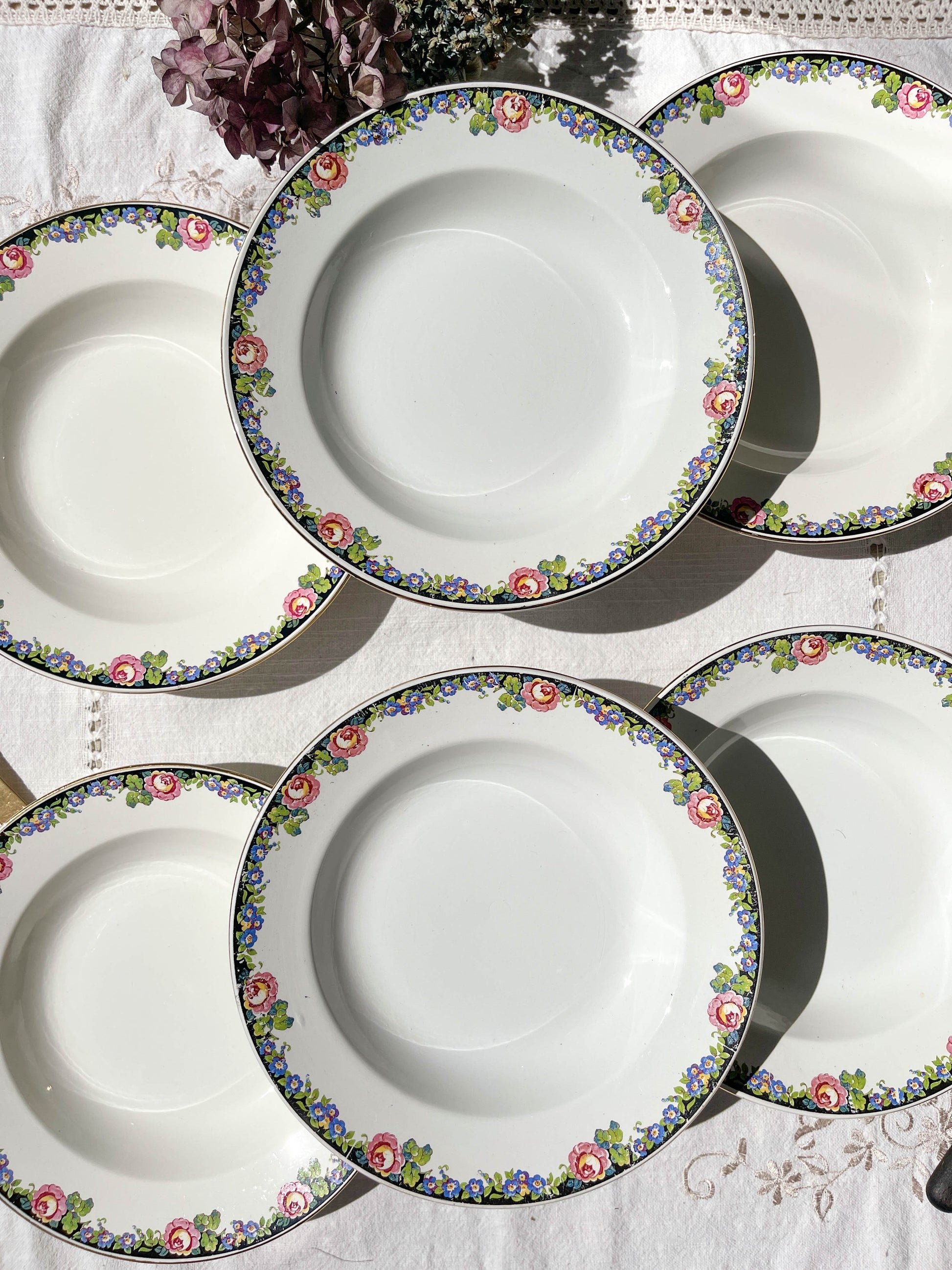 6 DIGOIN opaque porcelain soup plates with floral pattern "3984"