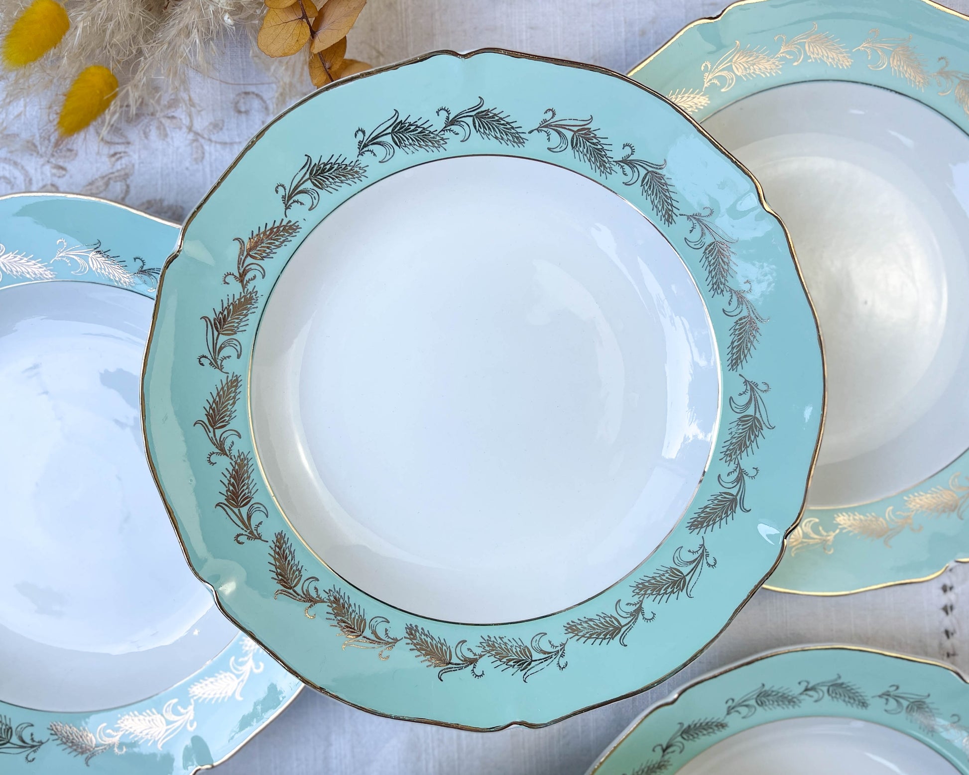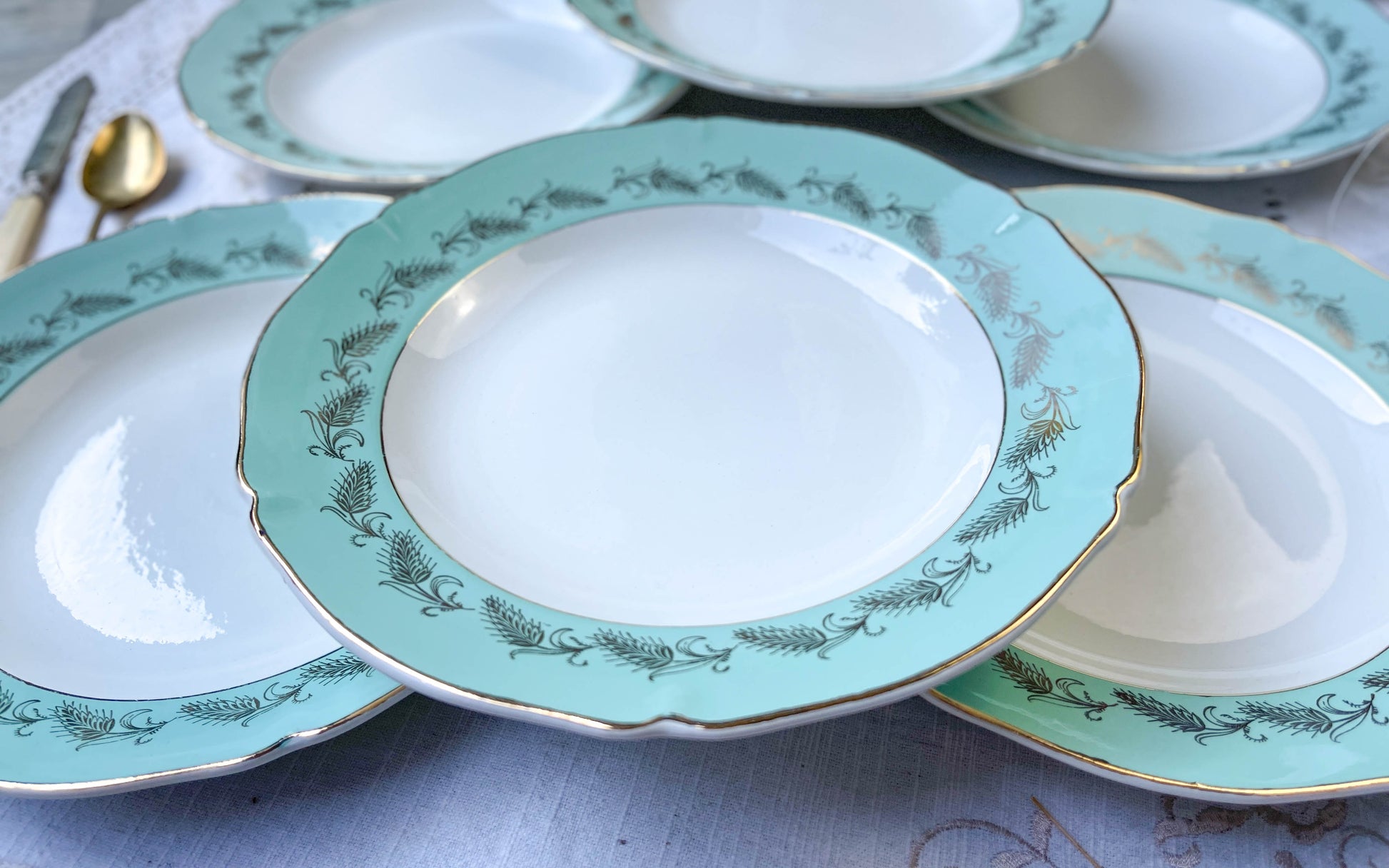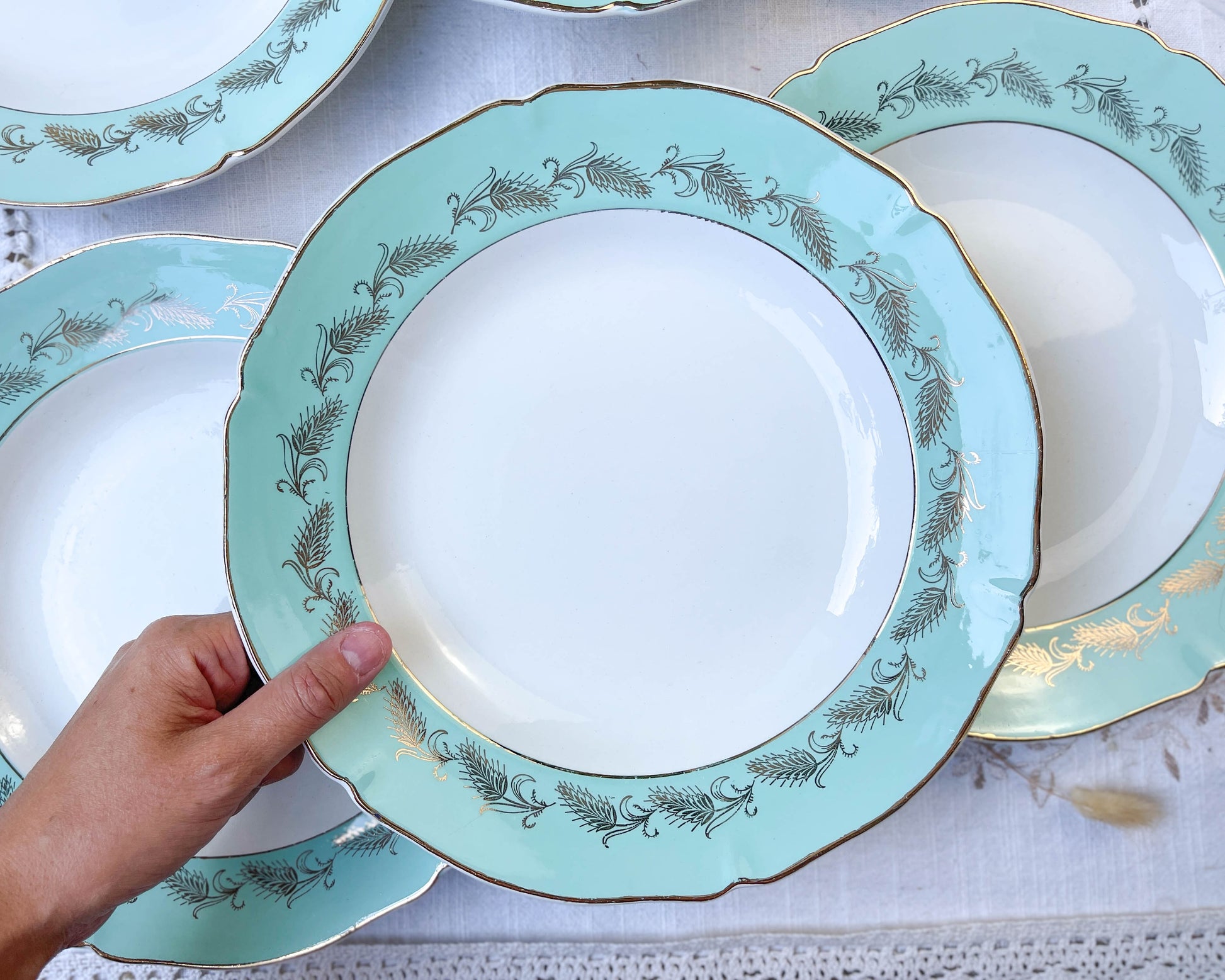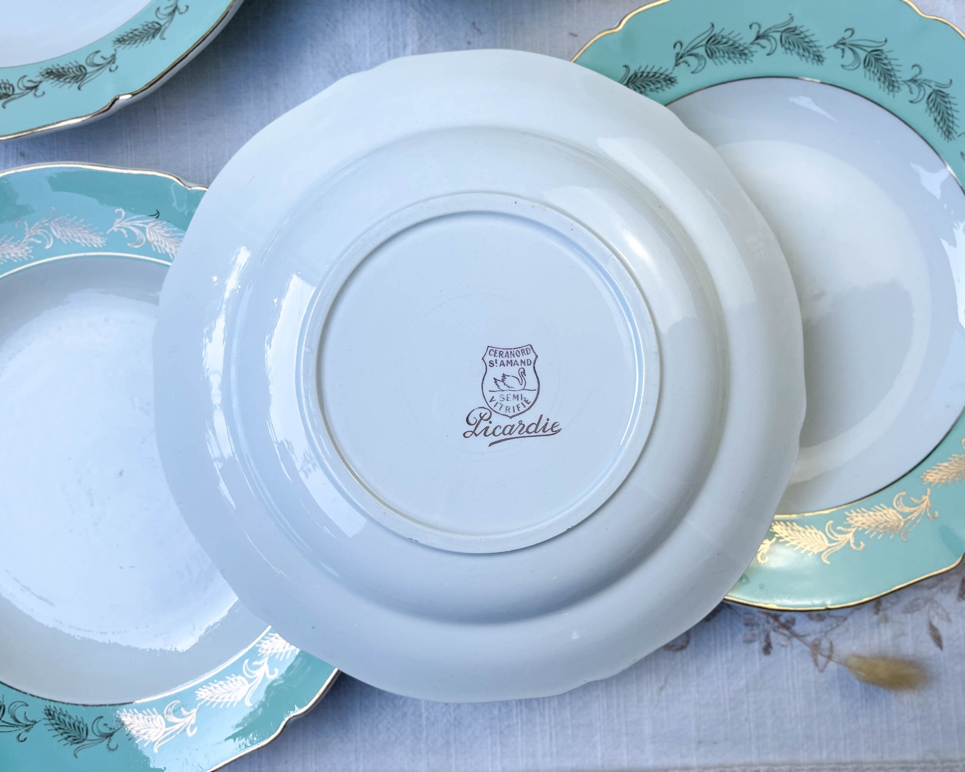 6 St Amand Céranord PICARDIE model deep plates in white, green and gold earthenware