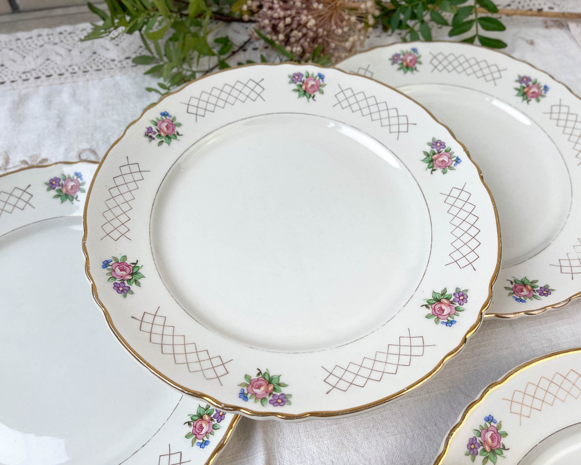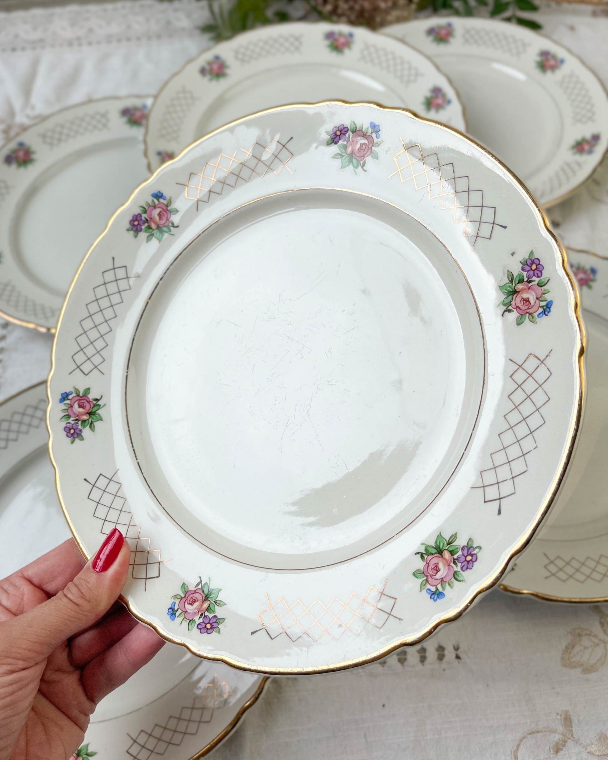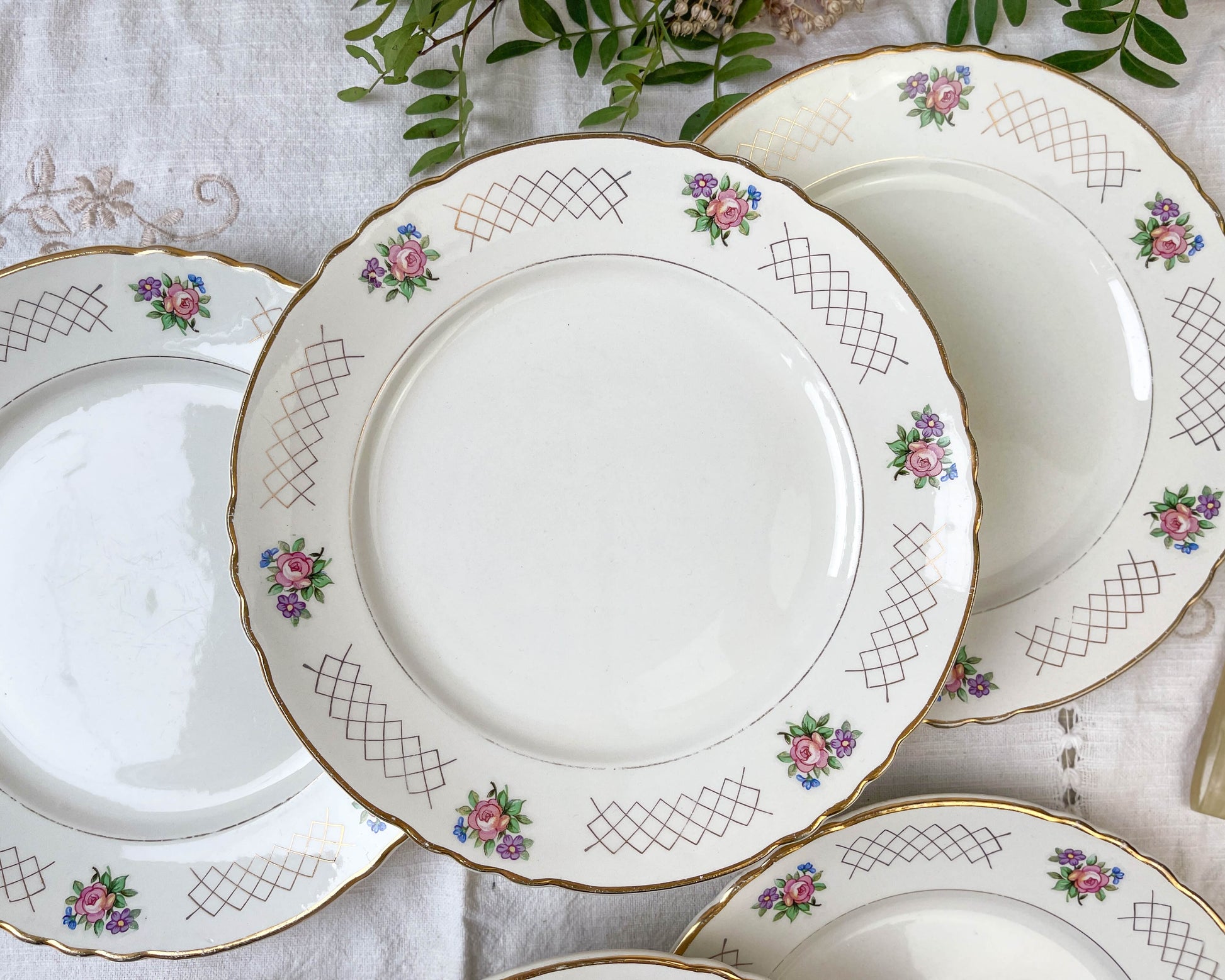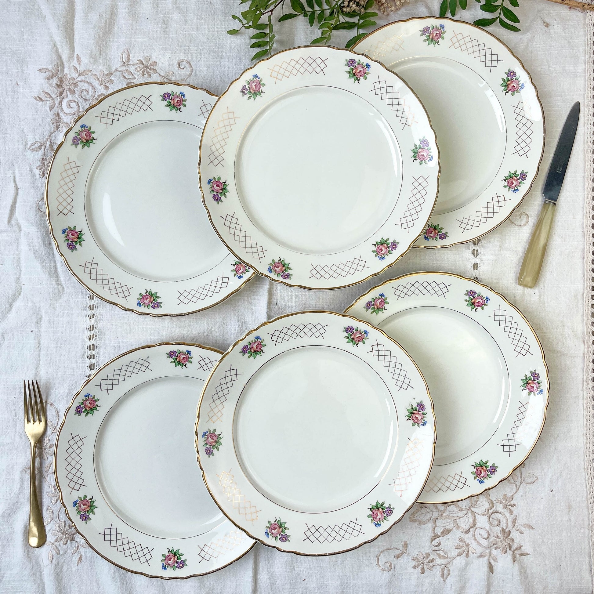 6 Flat plates in floral earthenware MOULIN DES LOUPS Cordoue model