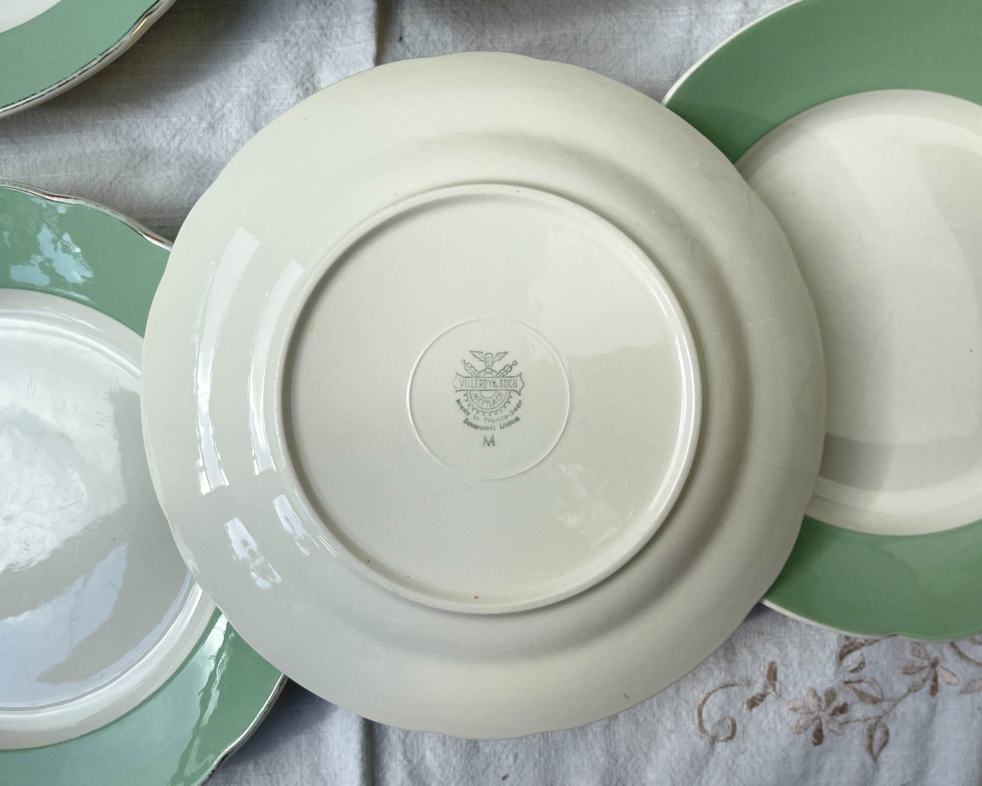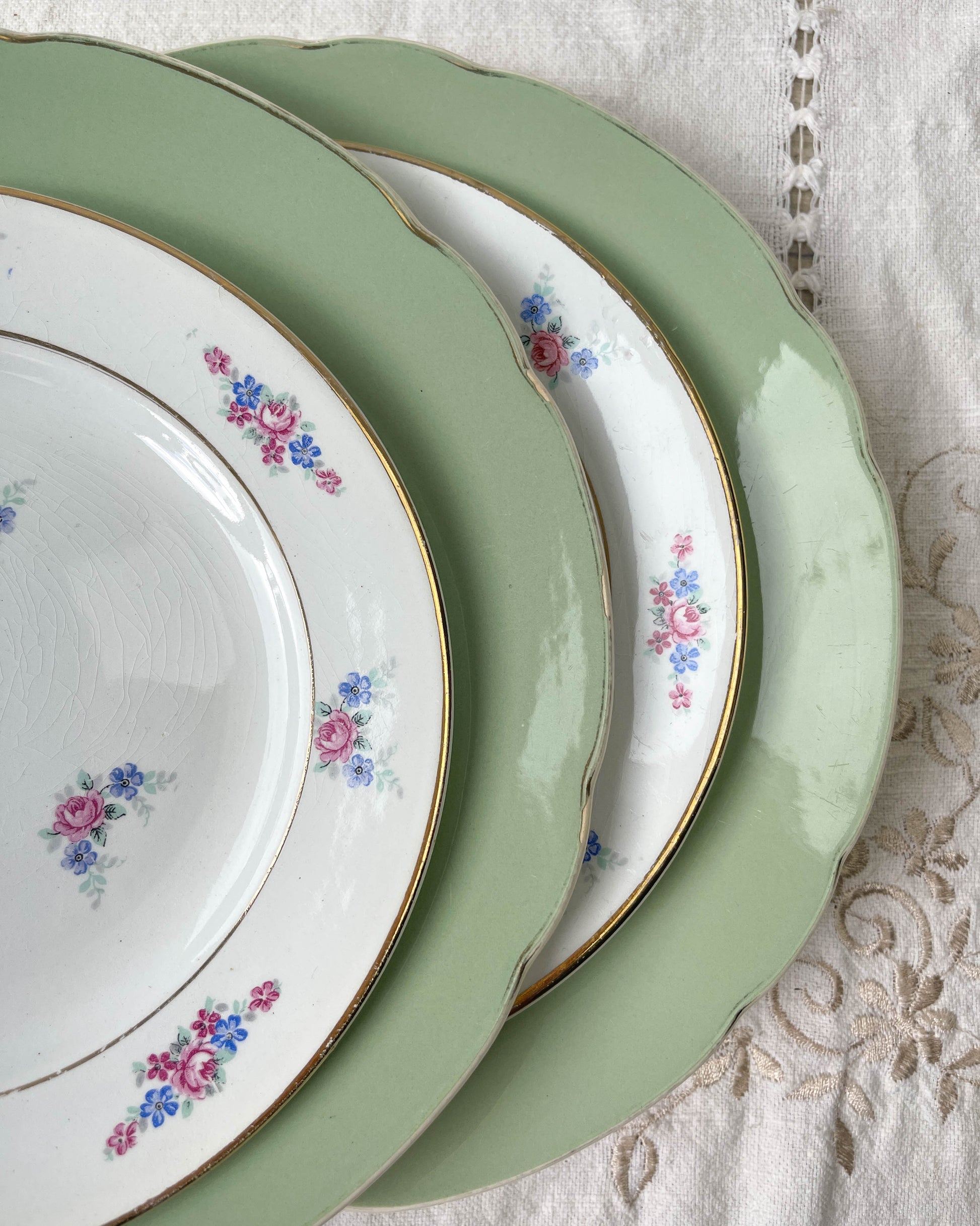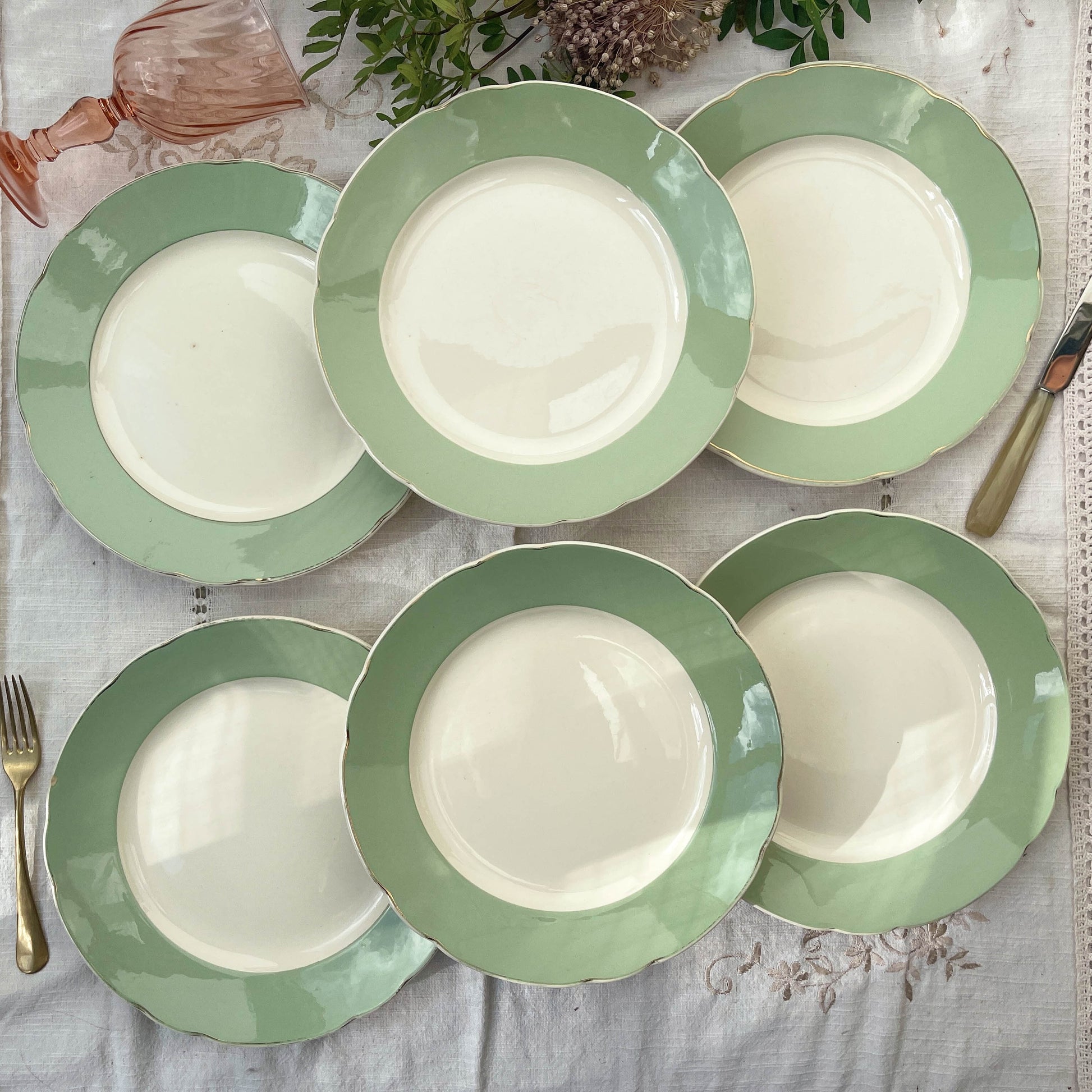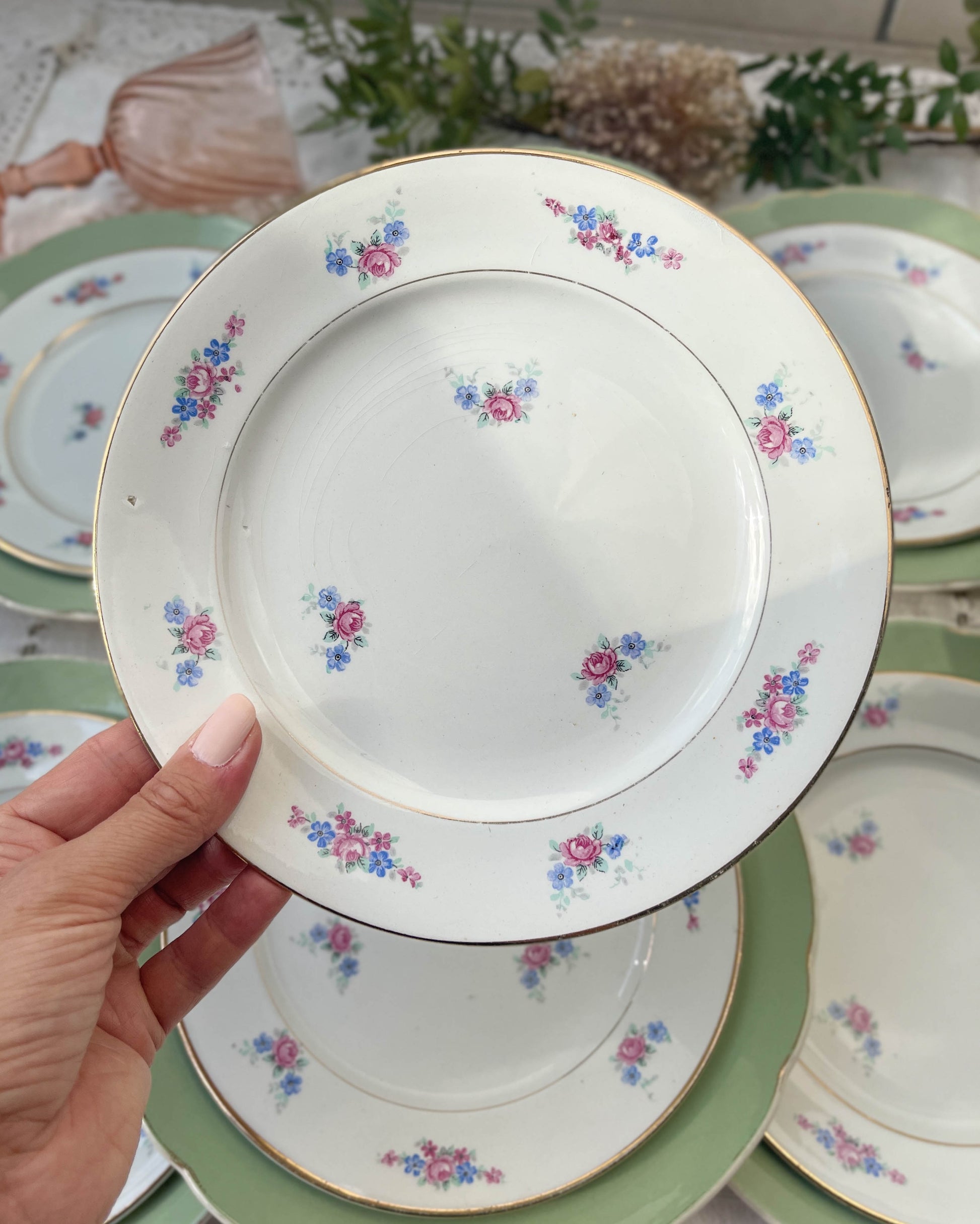 Service for 6 people consisting of 6 flat plates and 6 small mismatched starter or dessert plates.