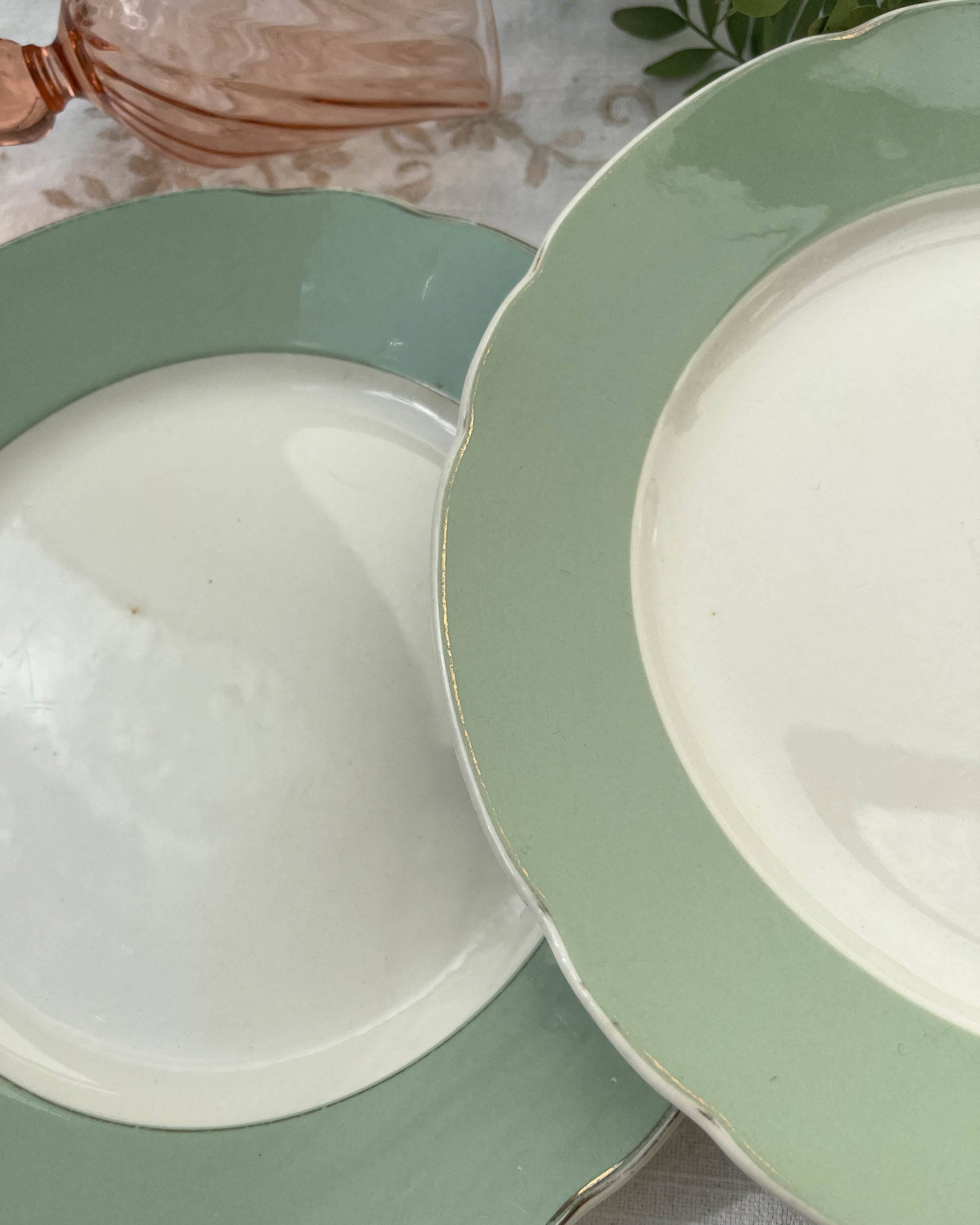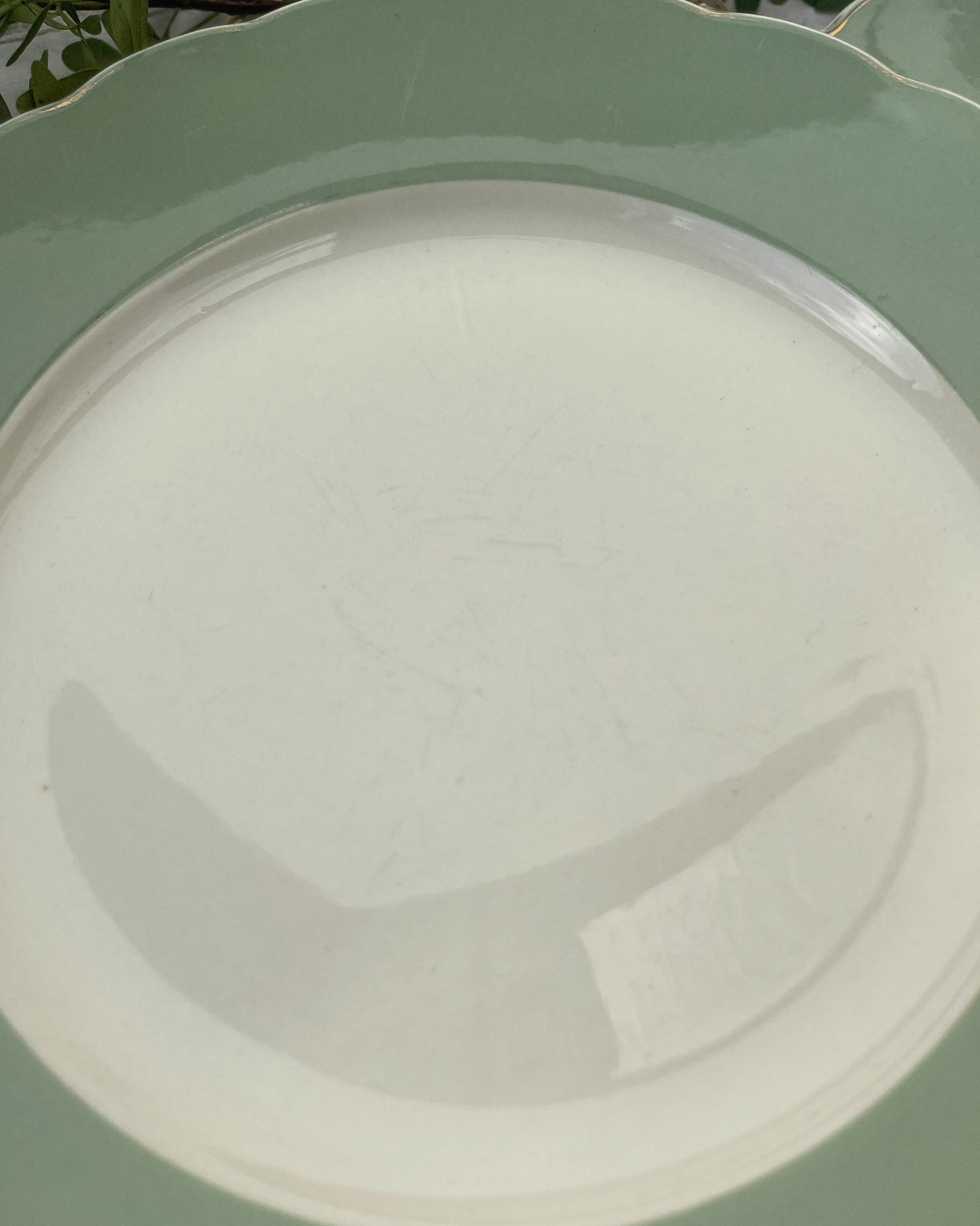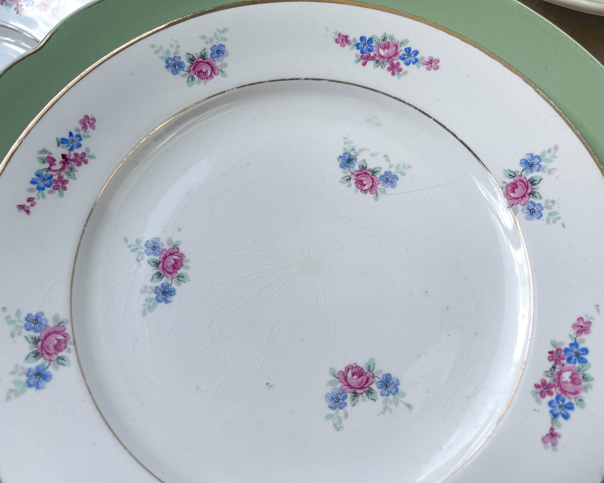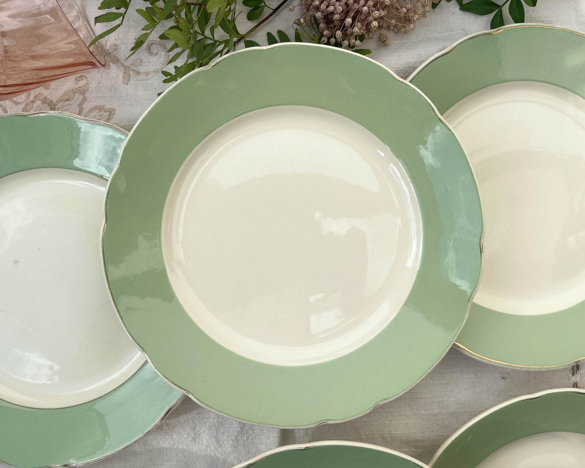 Service for 6 people consisting of 6 flat plates and 6 small mismatched starter or dessert plates.