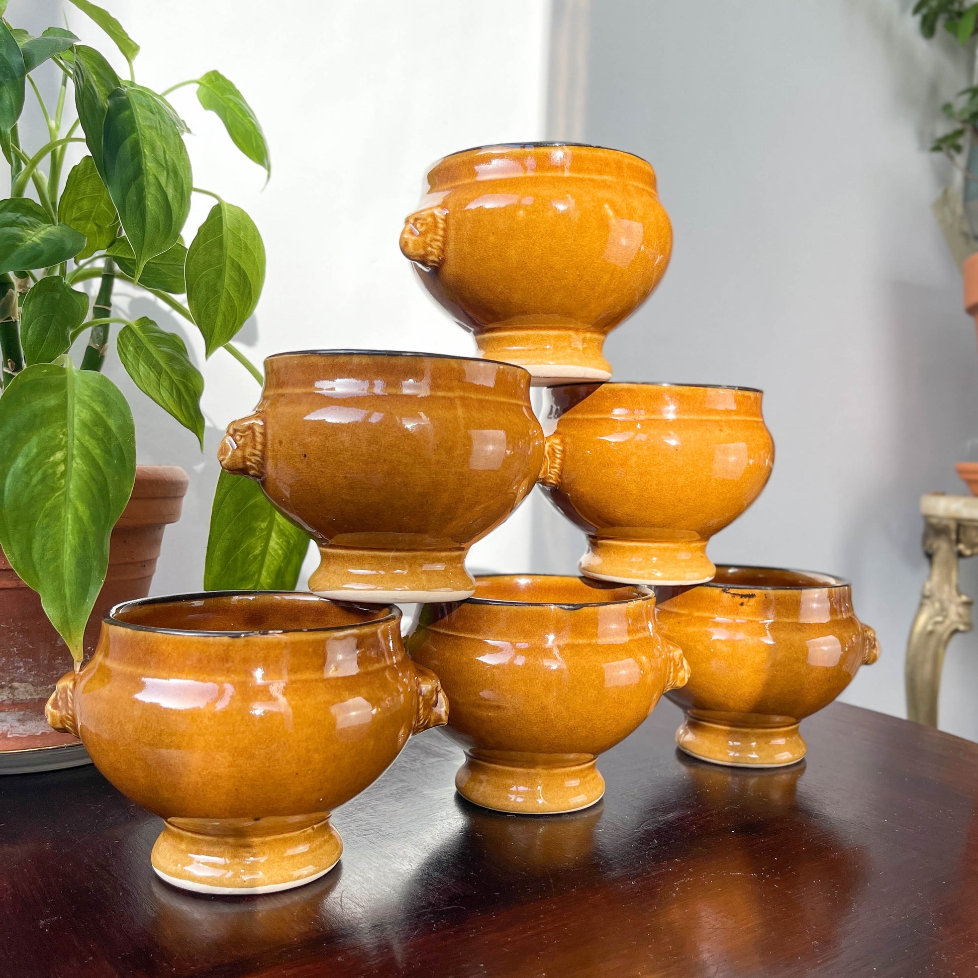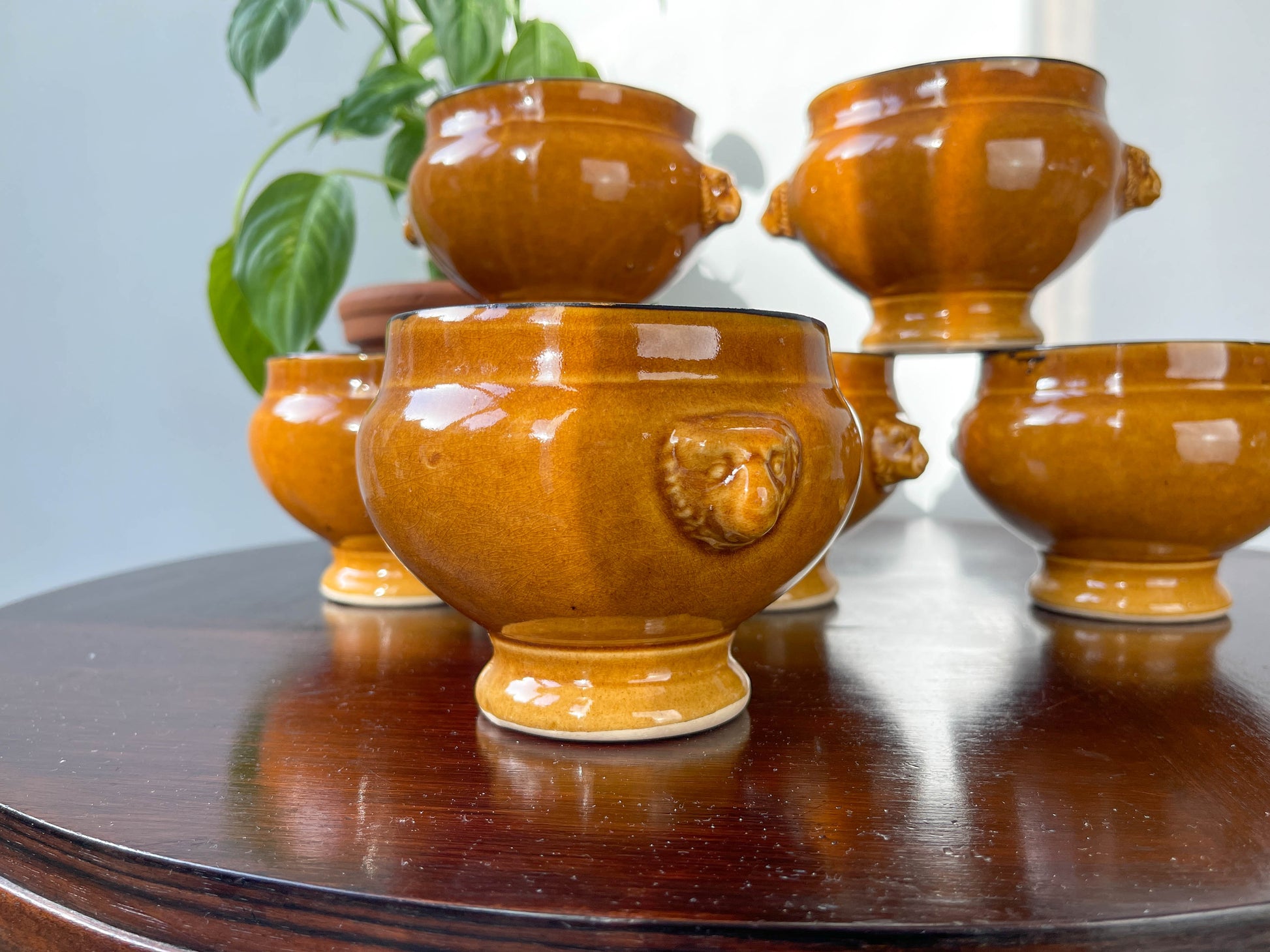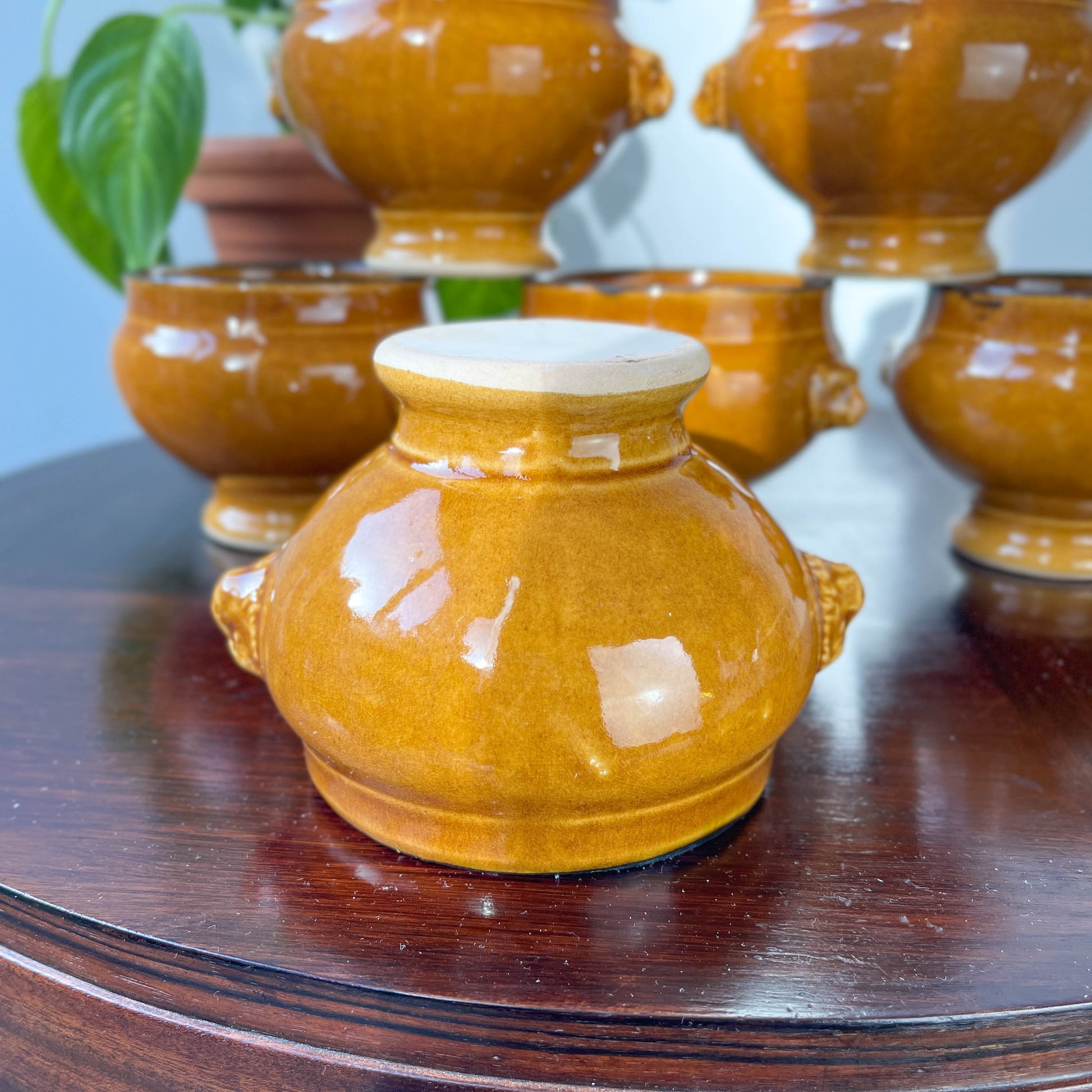 6 Ochre Glazed Stoneware Onion Soup Bowls