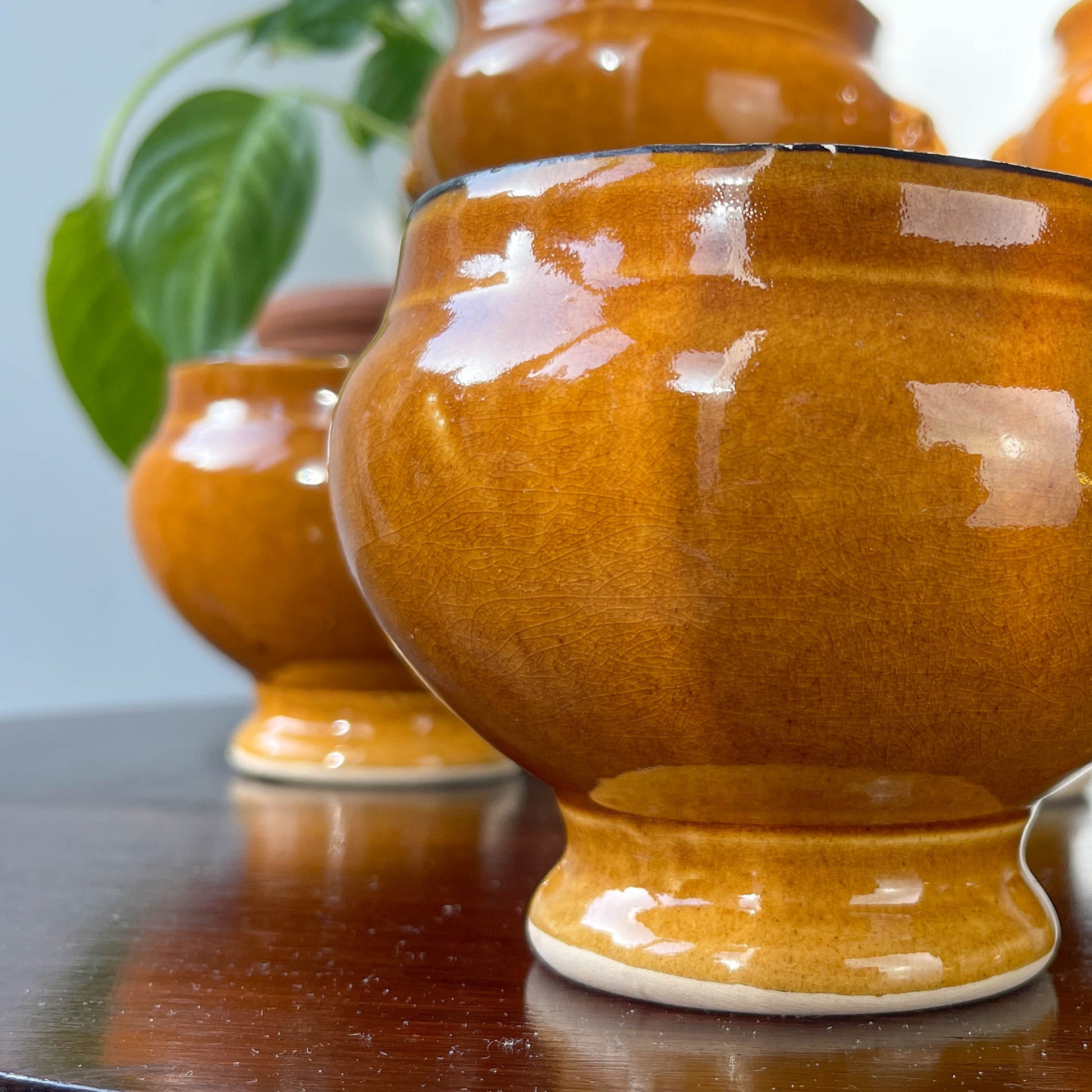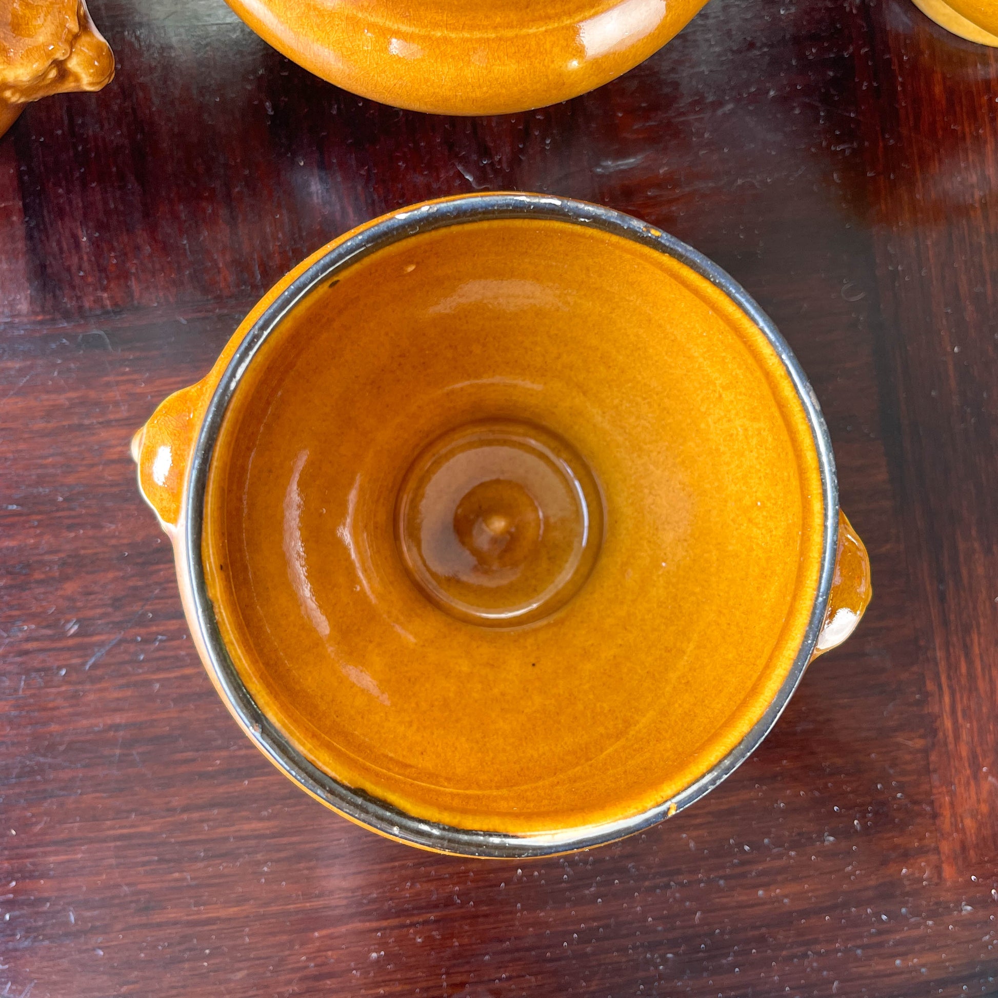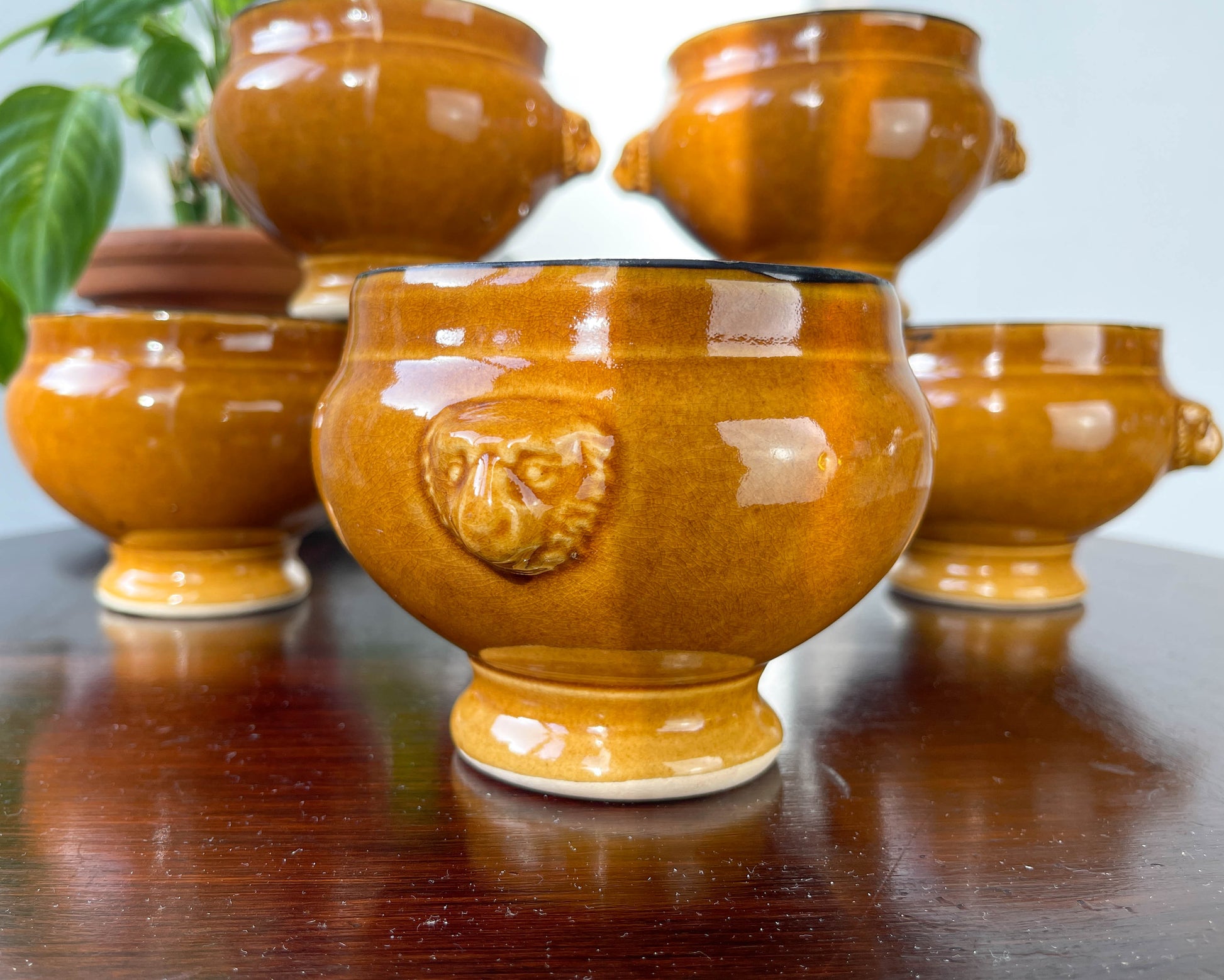 6 Ochre Glazed Stoneware Onion Soup Bowls