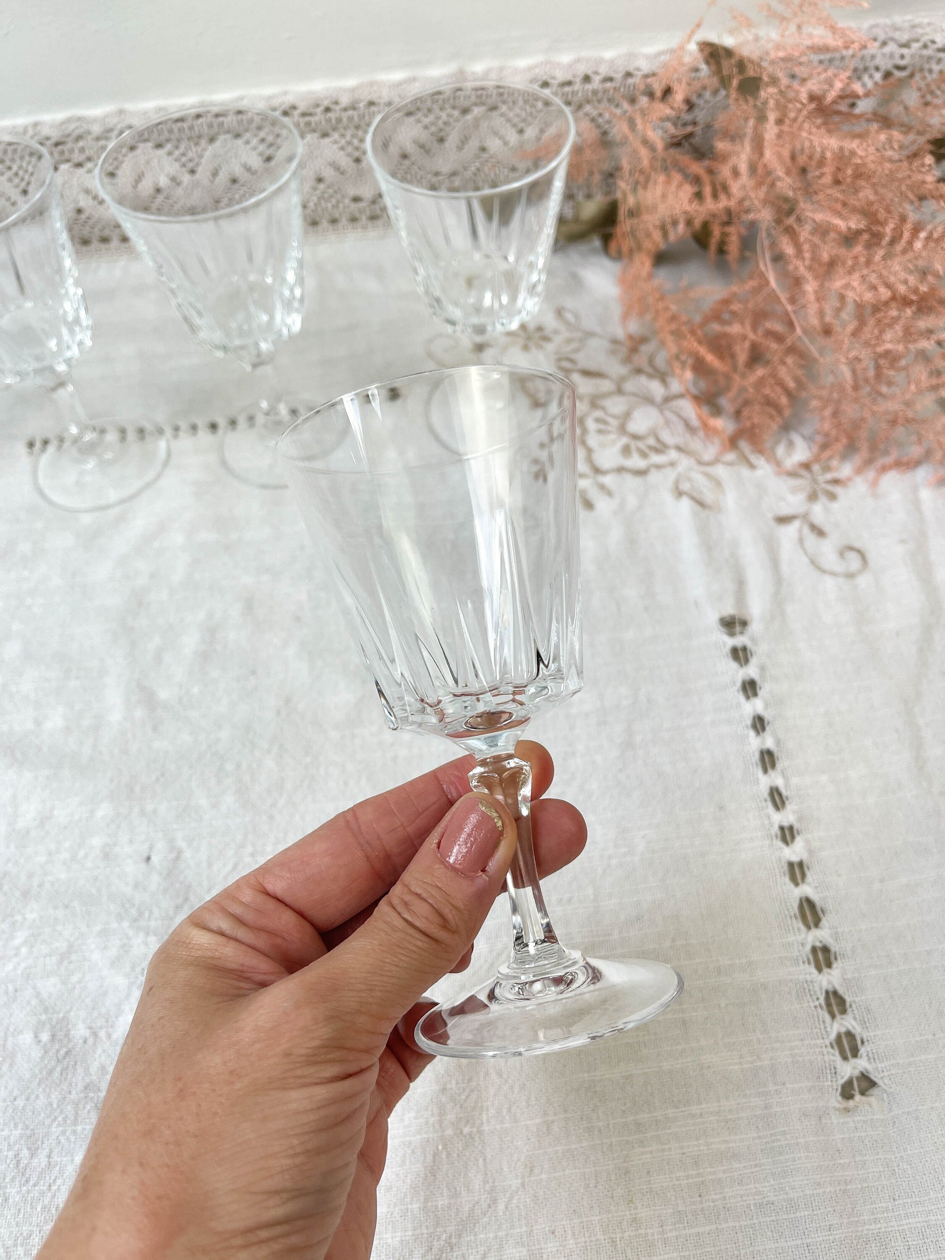 Set of 6 Cristal D'Arques white wine glasses, "Versailles" model, made in France, dating from the 1960s.