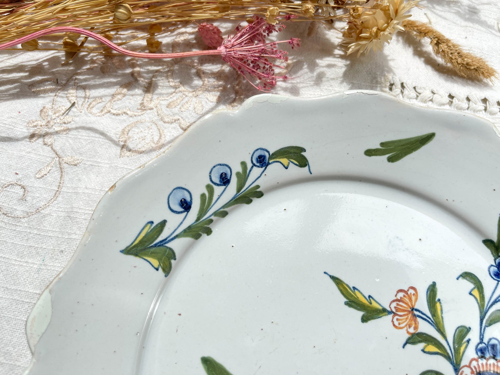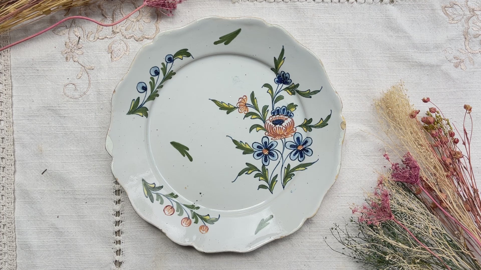 Old French Earthenware Plate 18th Century NEVERS Floral Pattern
