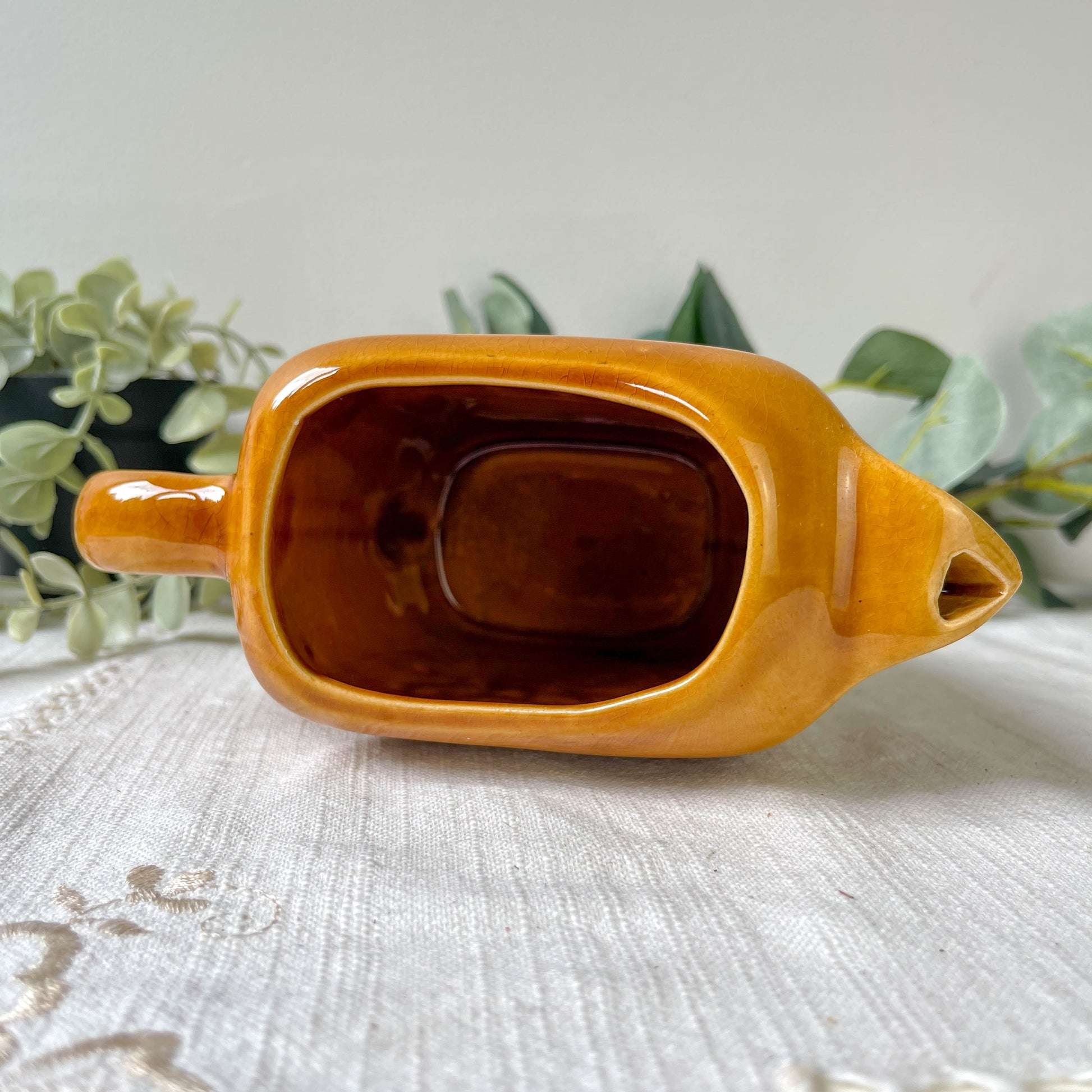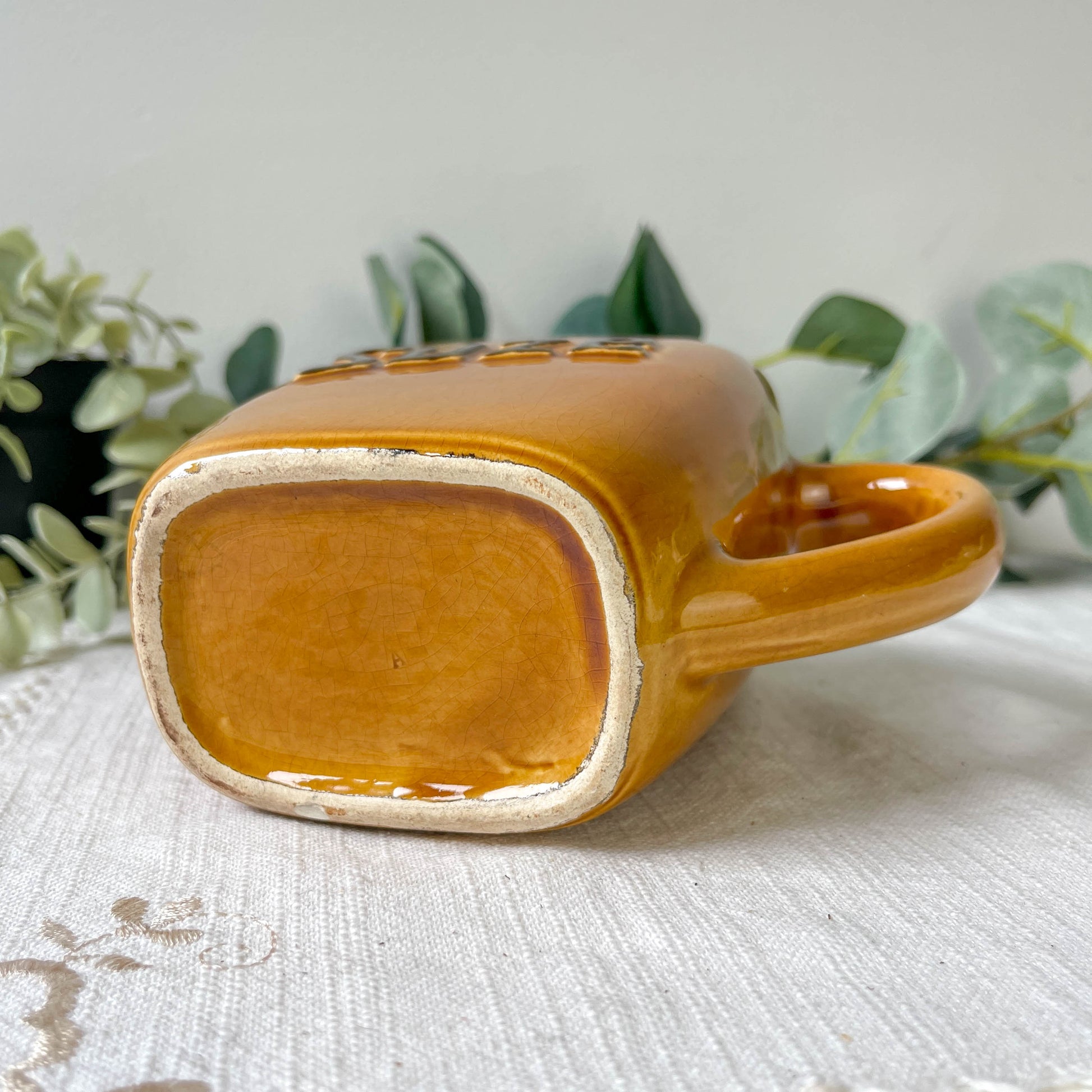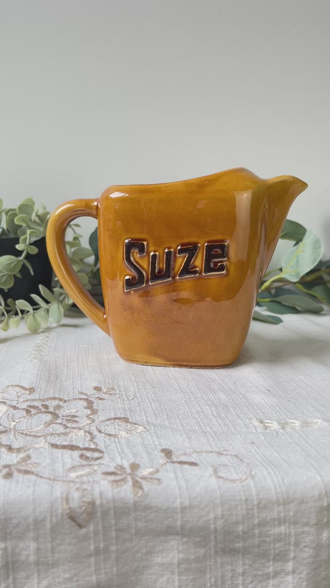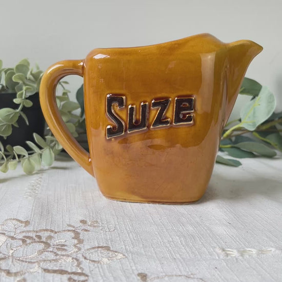 Pretty little vintage Suze carafe made of ochre-colored enamel stoneware, dating from the 1950s.