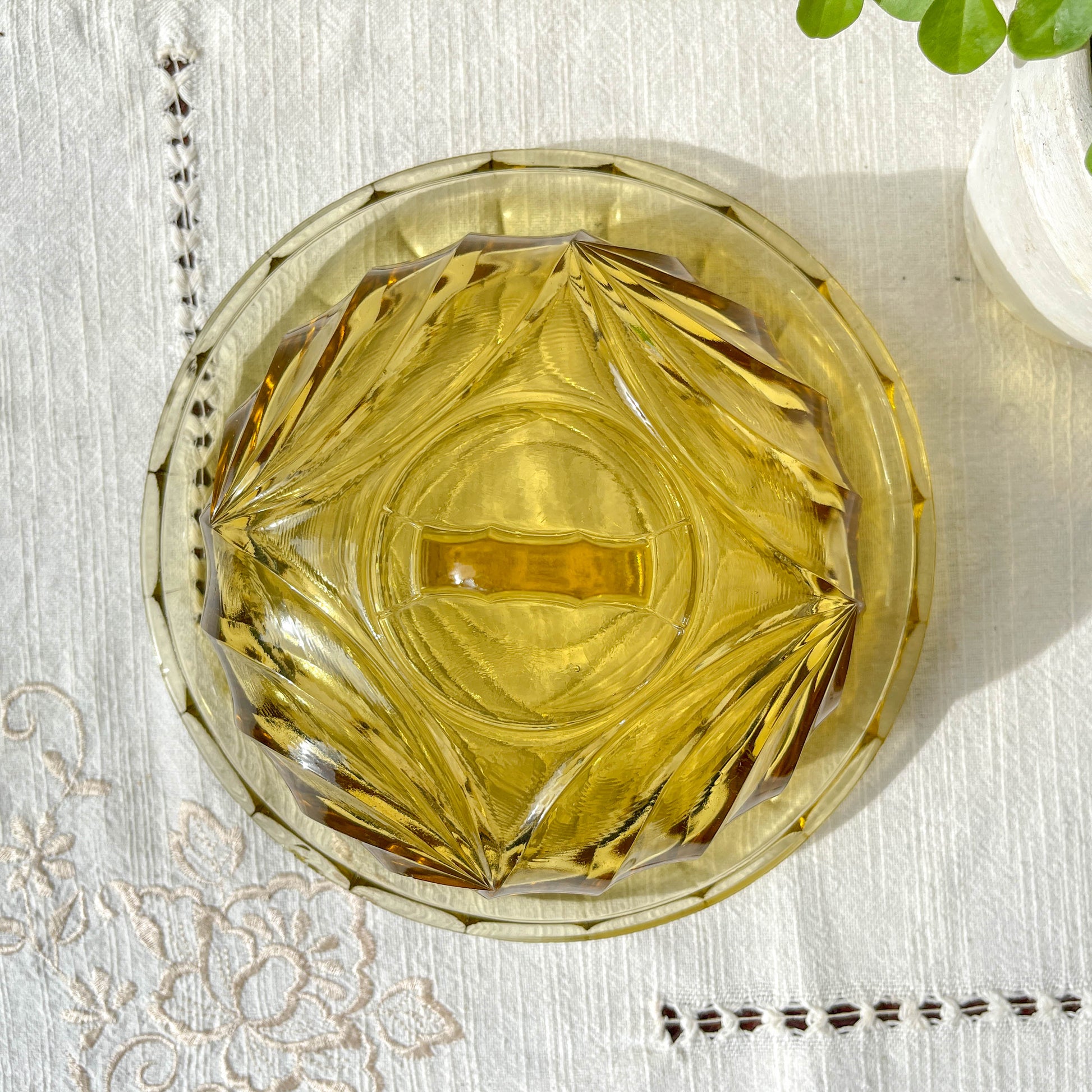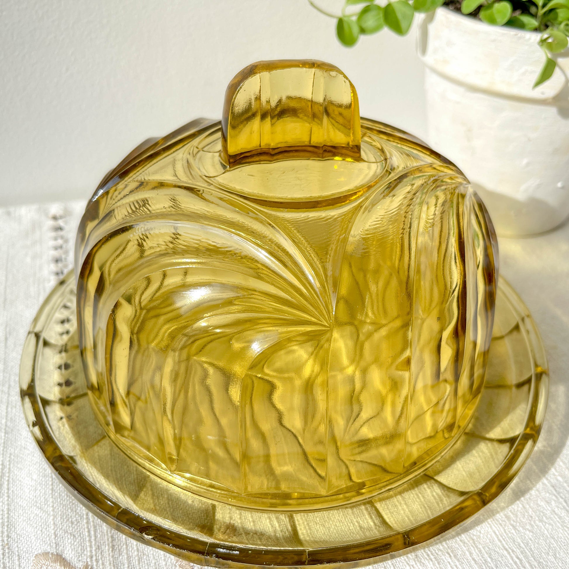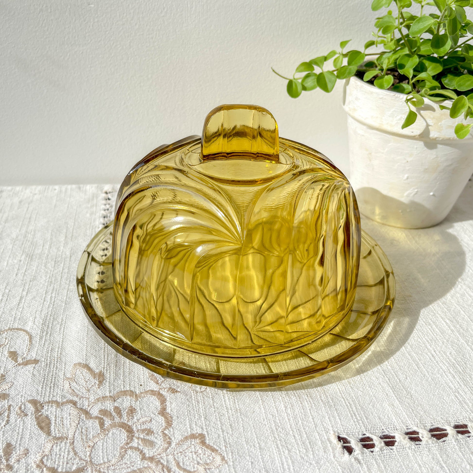 Vintage amber glass cheese dome – Made in France – Retro cheese board