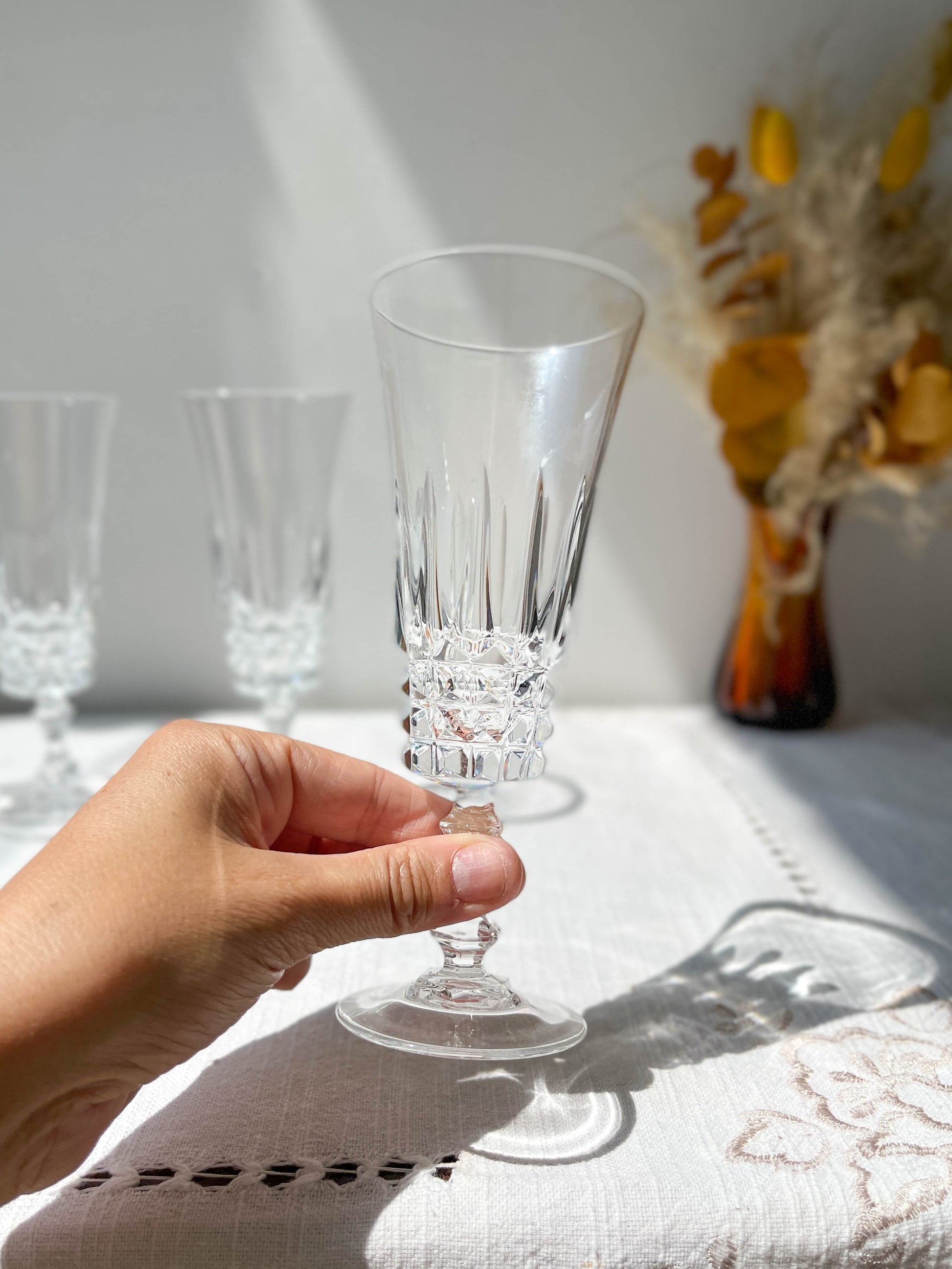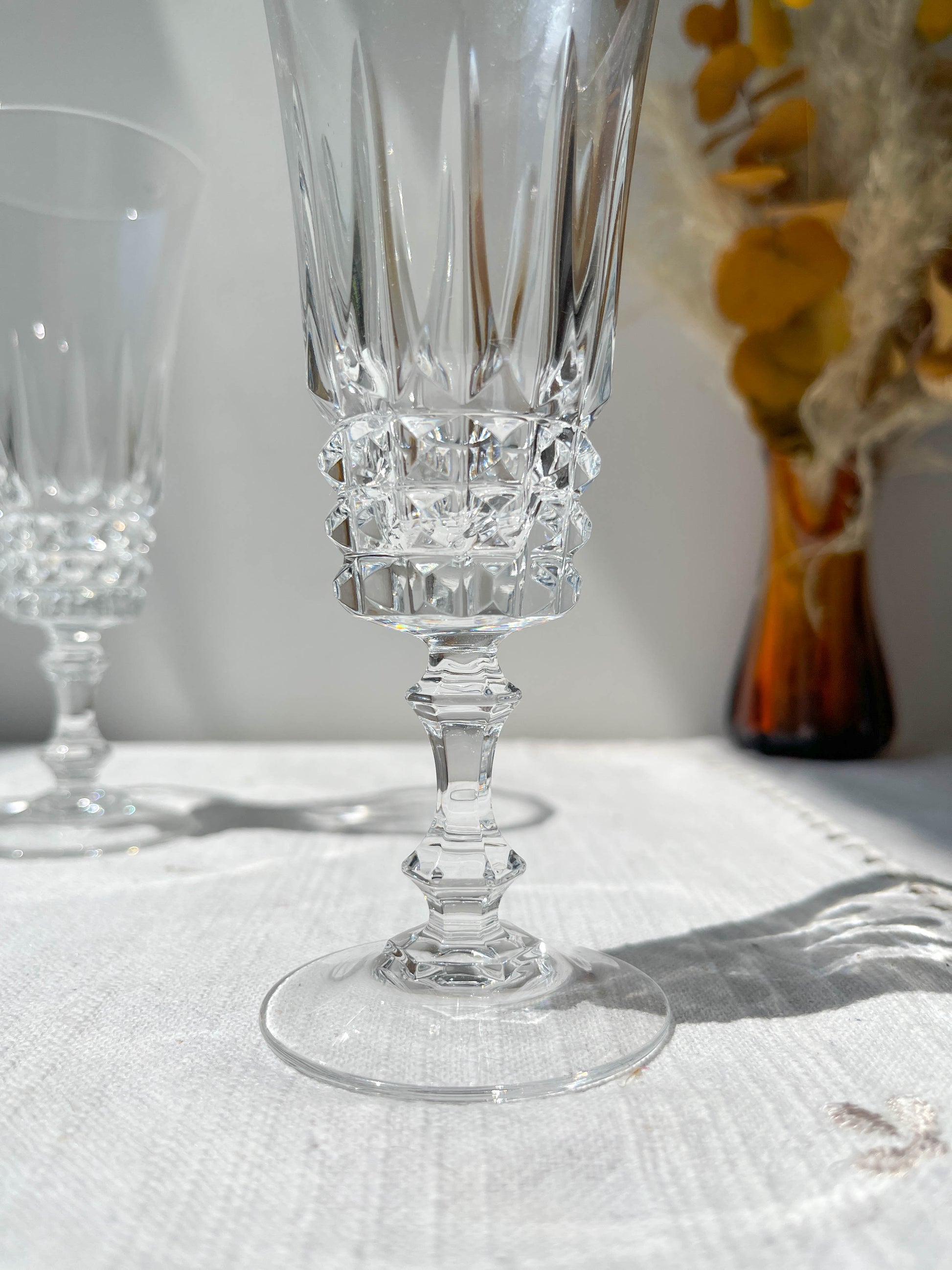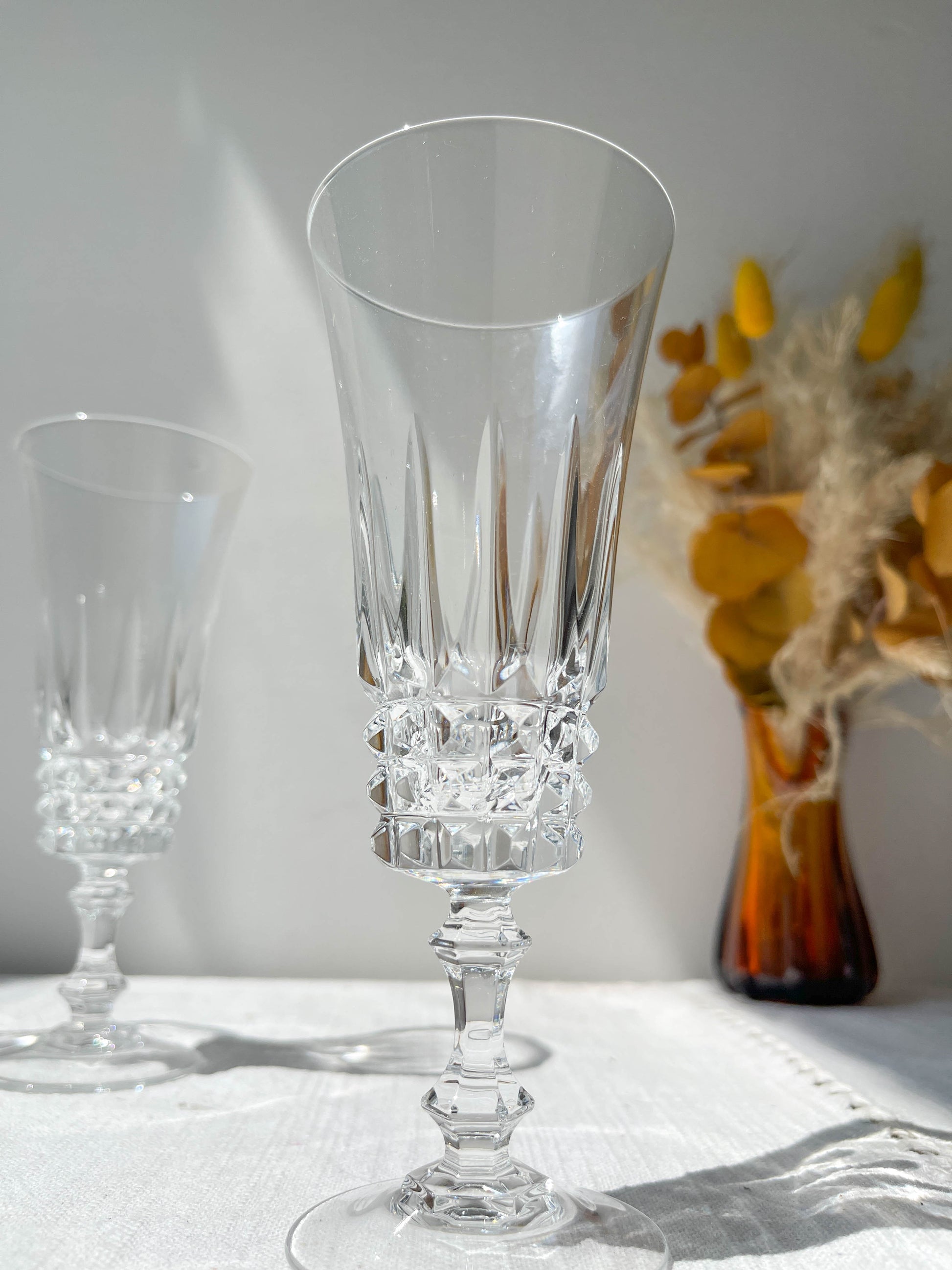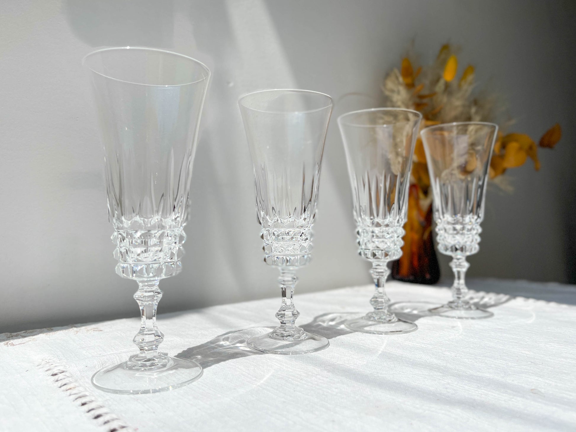 Set of 4 Cristal D'Arques champagne flutes, "Tuileries" model, made in France.