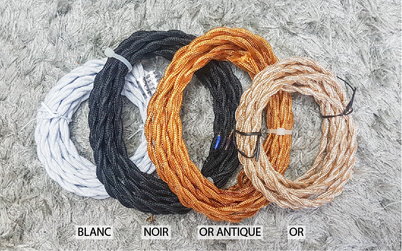 → The color and length of the textile cable: White, Black, Antique Gold or Gold.