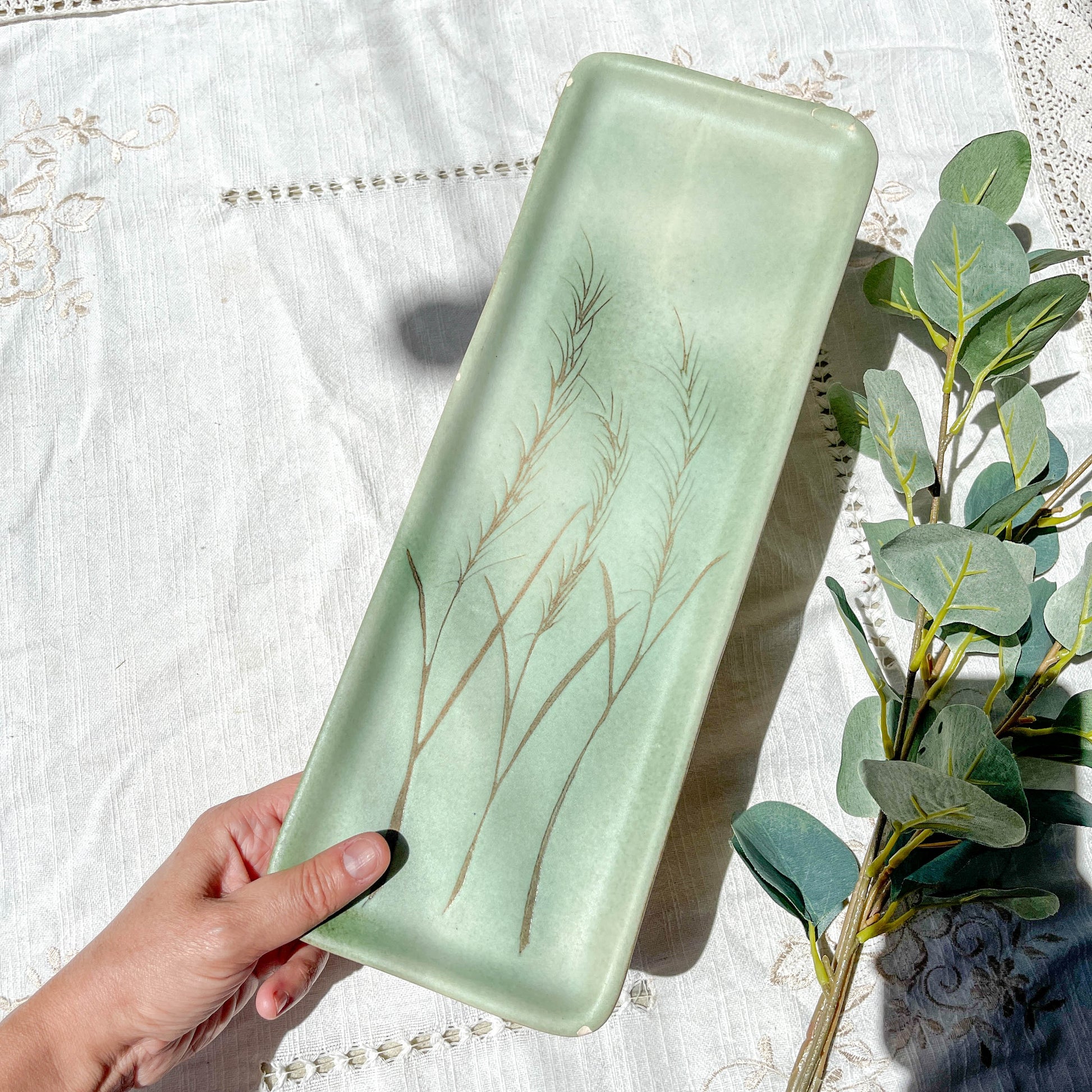 Add a touch of authenticity to your table with this superb green earthenware asparagus dish, signed Abu Gosh – Jerusalem, circa 1960-70.