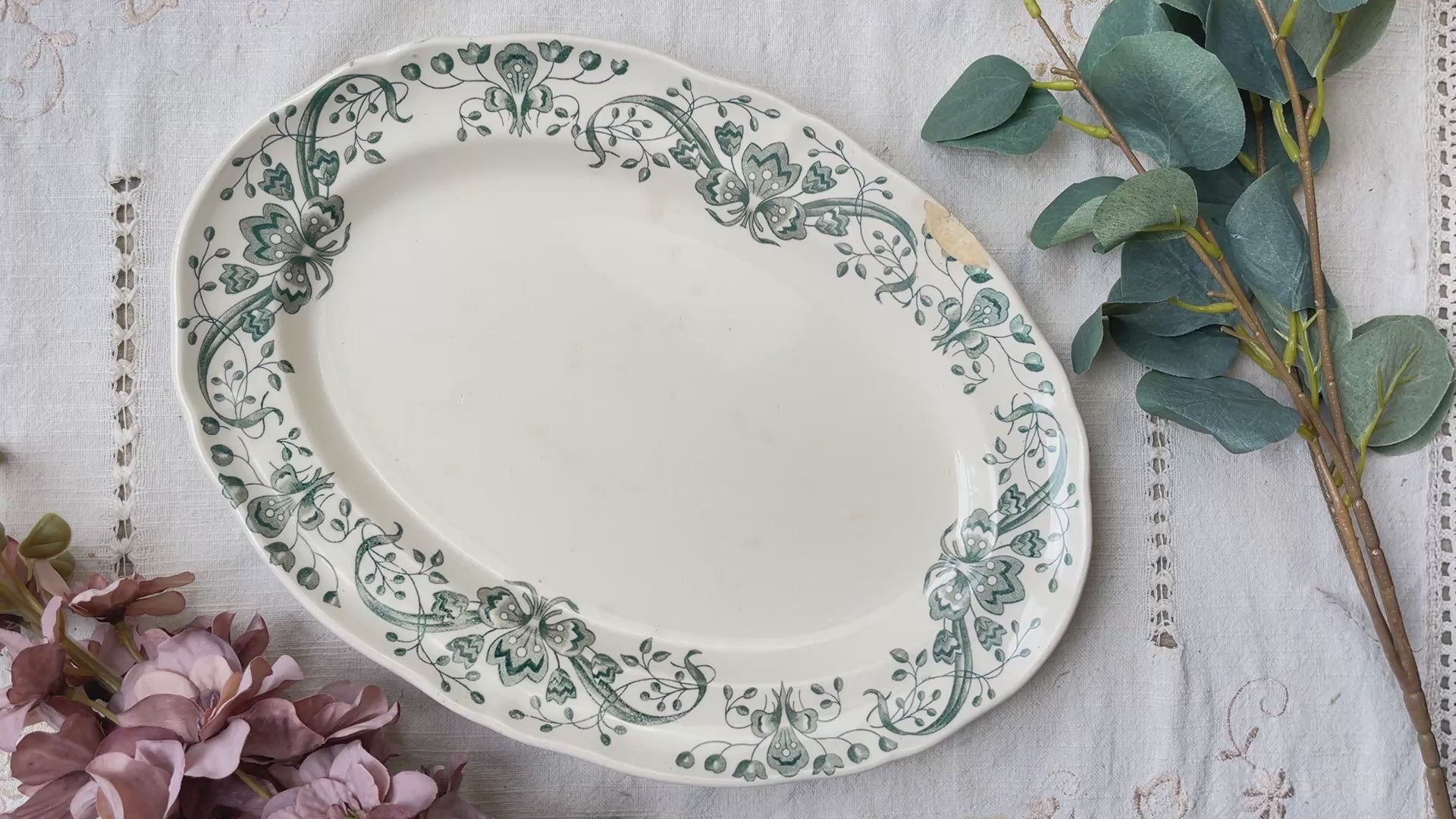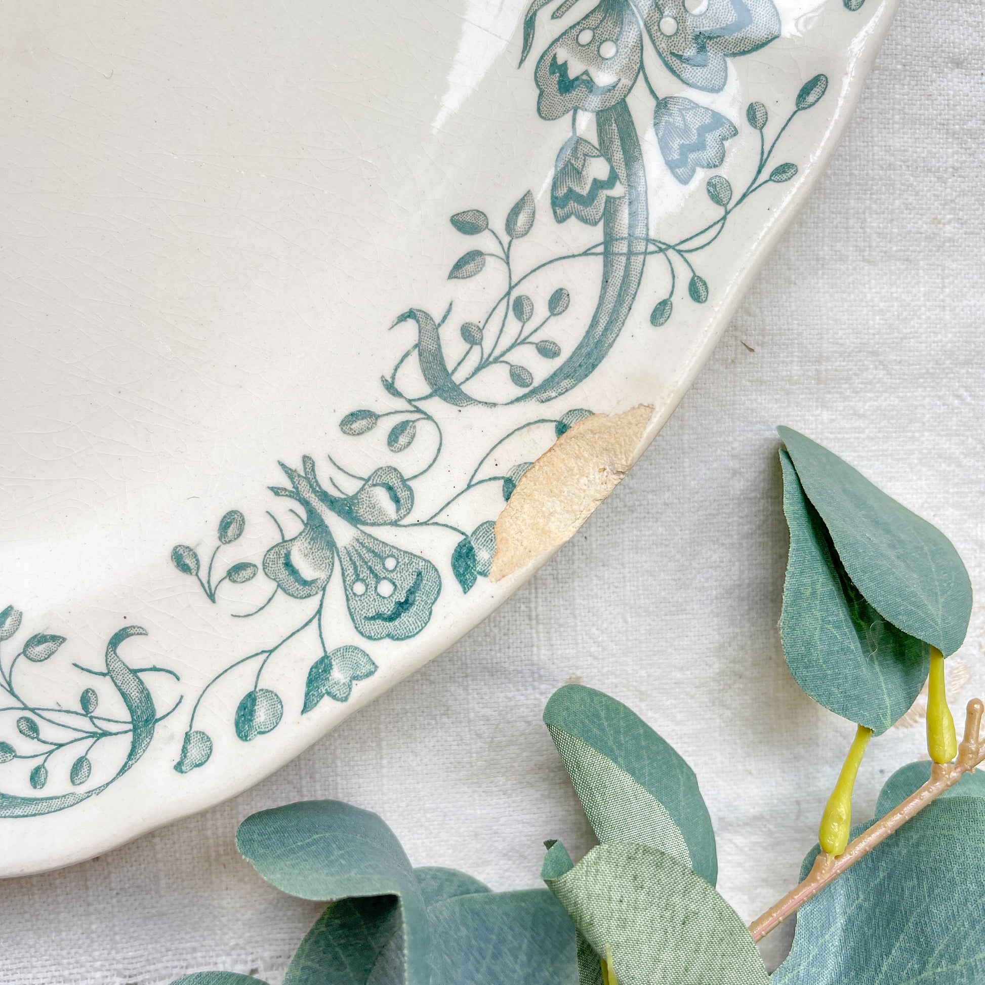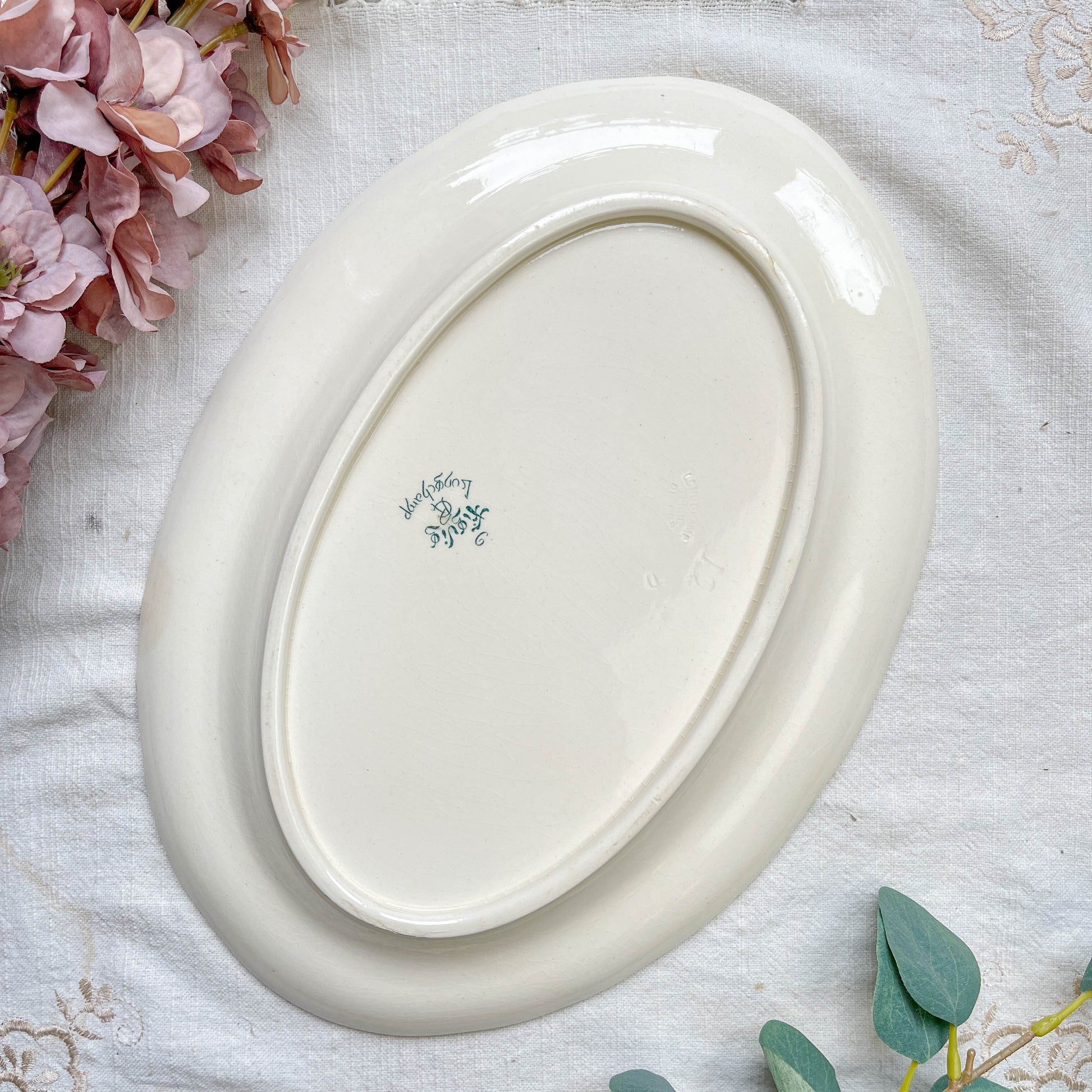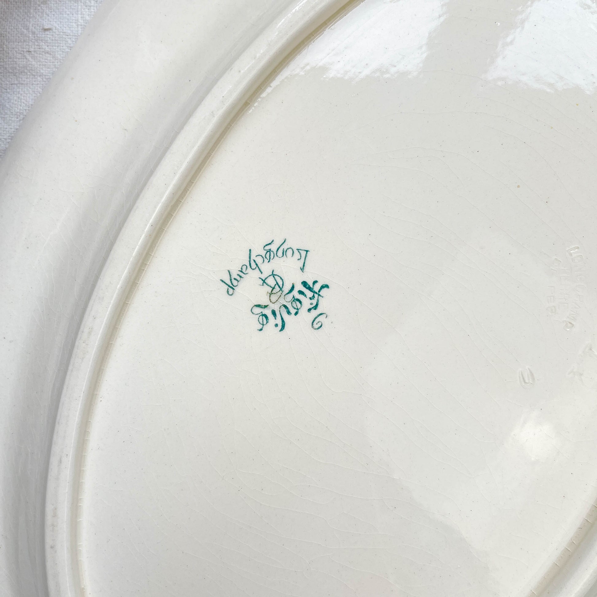 Plat oval Ancien Terre de Fer "Figuig" – Longchamp XIXe – Vaisselle Française Vintage
