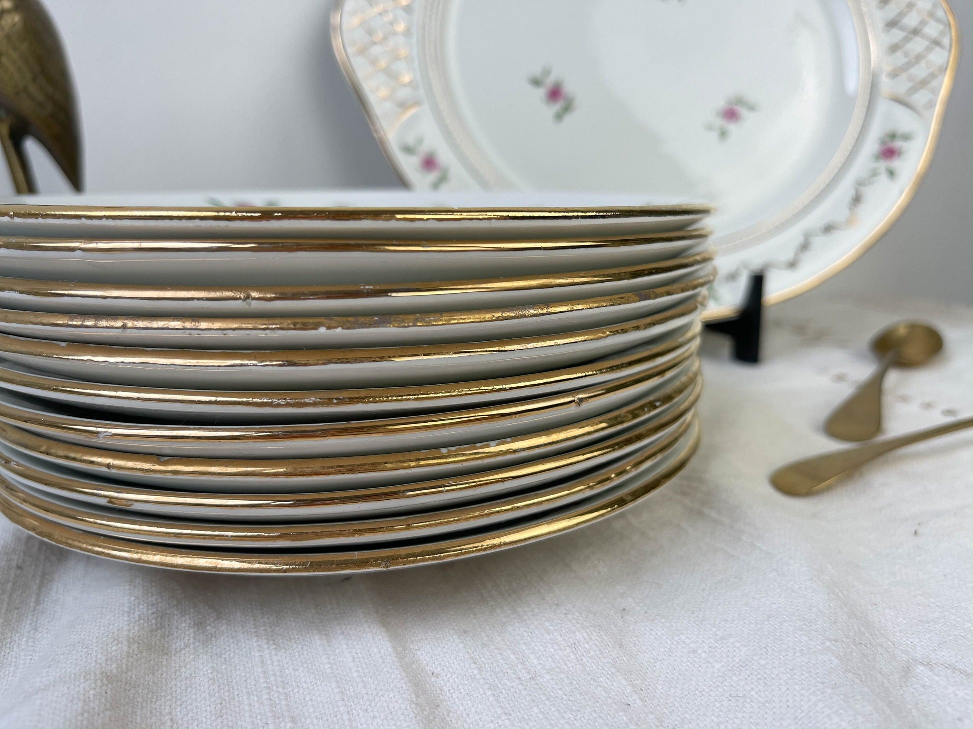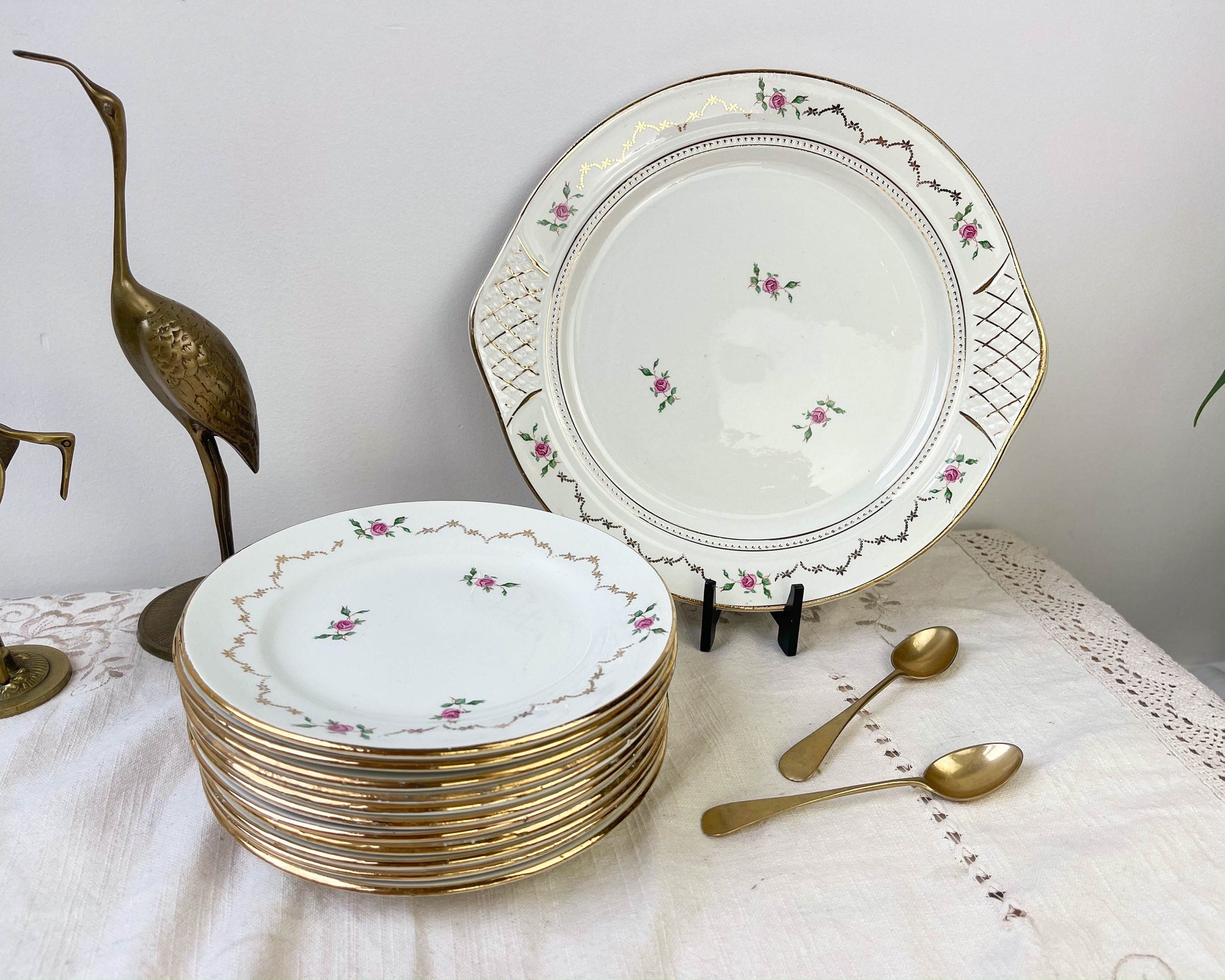 Vintage porcelain dessert service L'Amandinoise Made in France.