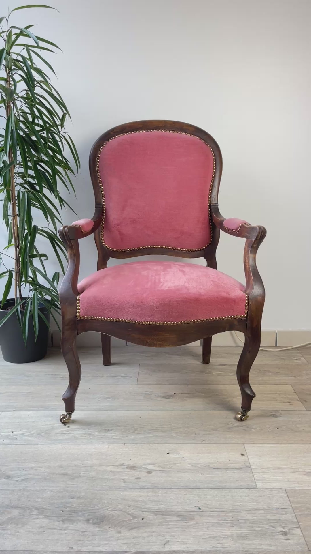 Fauteuil Louis-Philippe en velours rose – Élégance romantique & esprit vintage